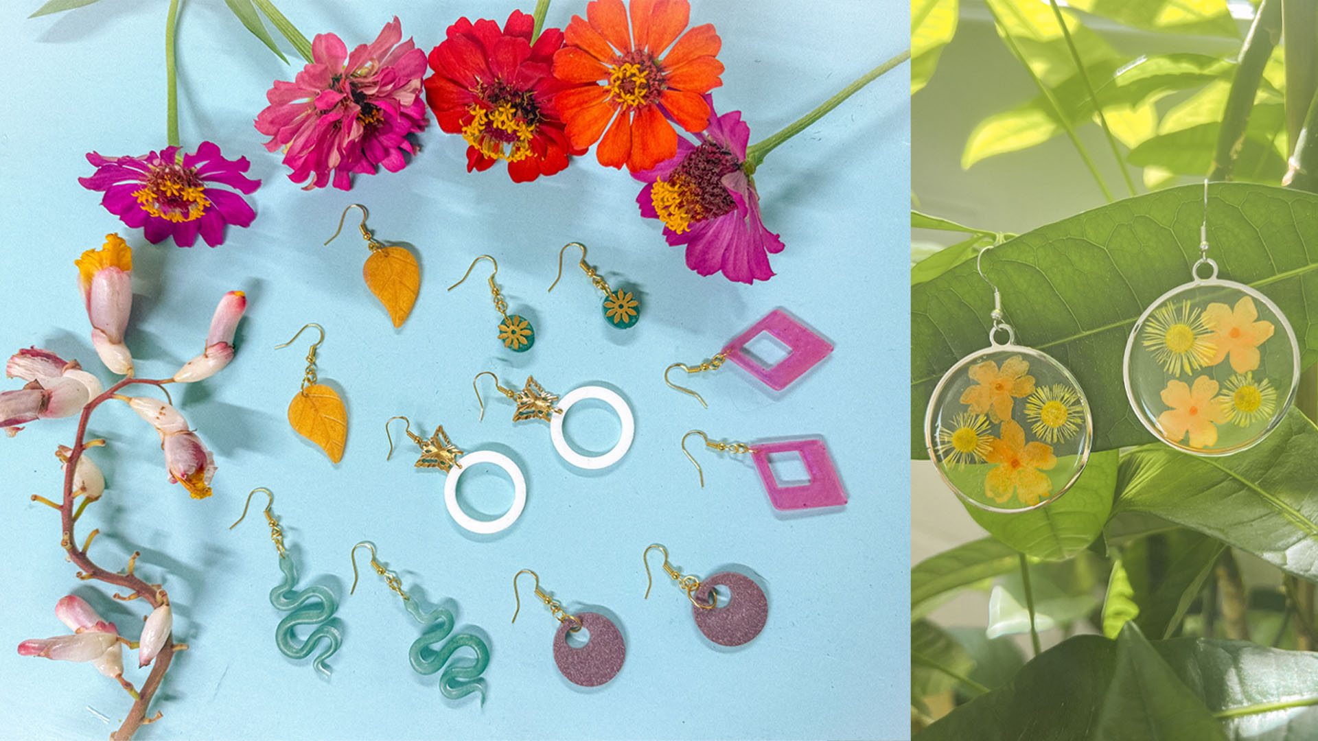 Several passion projects of mine are in partnership with surfboard shaper, Brayden Brown. I have been working on the digital media side of things to help strengthen the visual identity of the lifestyle brand, El Emporium. Over the past few years, Brayden and I have been working together to create an intentionally curated surfshop and vibe space unlike any other. It is a growing project, but I am stoked to see it’s progress from seed to flower. As well, In an effort to reduce the waste of materials while manufacturing surfboards, I have began using excess epoxy resin to create charms for hand crafted jewelry. Oftentimes I incorporate natural elements such as crystals, pressed flowers or butterfly wings into my designs.