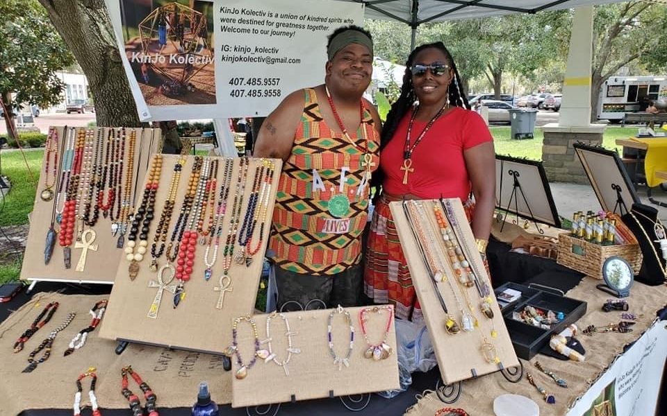 Joe Hokey & Kesha King-Hokey were born and raised in Sarasota, FL. In 2019, Kesha began crafting more as she had always been able to be creative with her hands. She’d also always been attracted to silver and gold, as well as crystals and gemstones, but began exploring that more. Joe always made sure there was sage and incense in the home. Joe and Kesha were always consumers of gemstones, jewelry and sage. There was a moment that they decided they could and should start creating what they loved. So Joe pushed the idea forward and started producing orgone pyramids and pendants for necklaces and setting up staging props. That transition is where Joe and Kesha established what is now known as KinJo Kolectiv LLC.