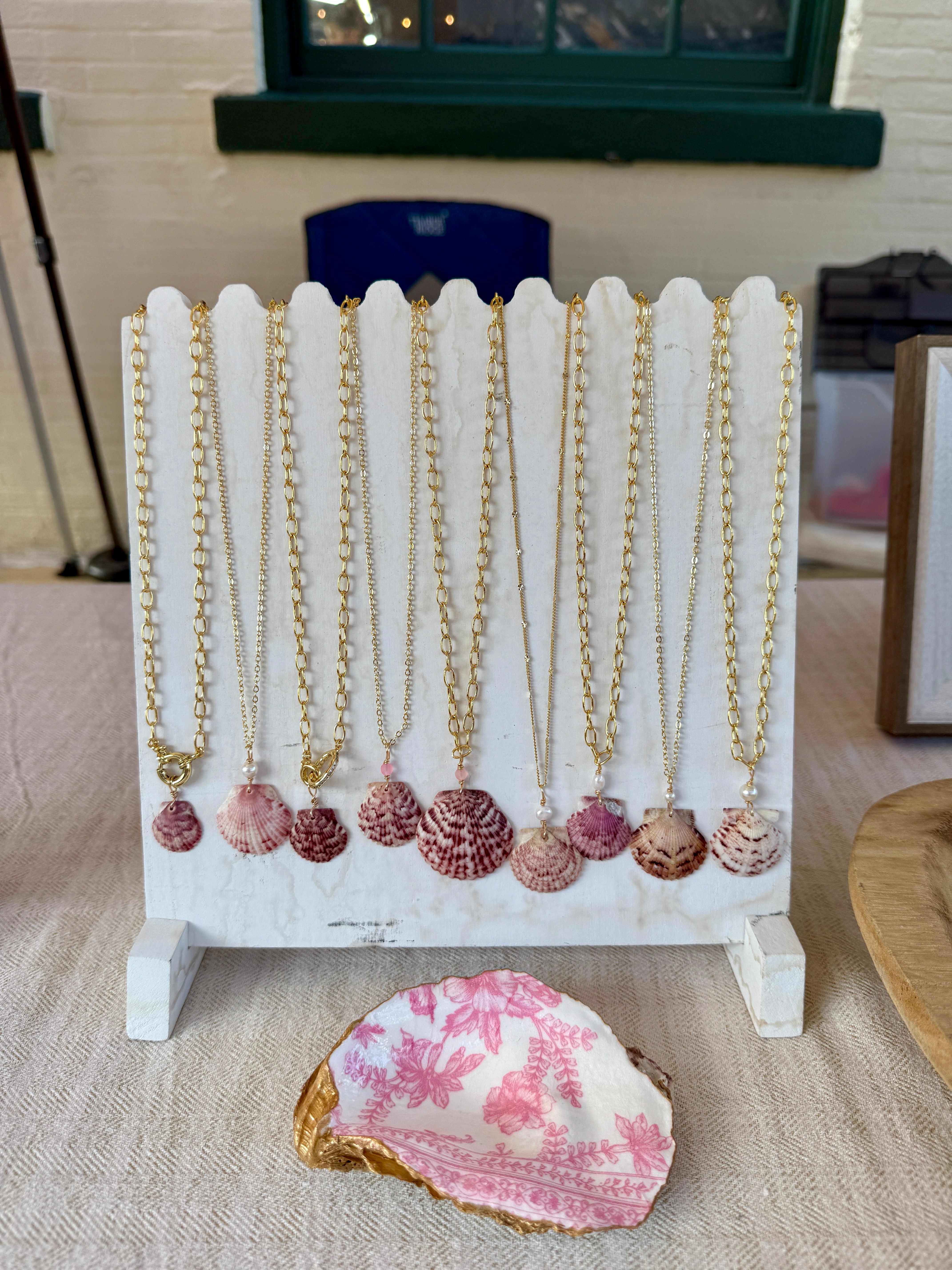 Eventually I came across a TikTok of this lady making ornaments out of oyster shells and that became my next fixation, I started collecting oysters and making trinket dishes, ornaments, picture frames, etc. I started finding all these tiny oysters and thought they were so cute but had no clue what I could use them for until one day it just clicked and I thought to myself, how perfect would this be as jewelry!? A lot of my friends and family loved my stuff and I started making custom orders for them, that encouraged me to start selling my products online through Shopify! I looked into pop up markets near me and did my first event last summer at Red dog surf shop in NSB, I had so much fun and it felt so good to meet people and sell in person as well. I attend the Artisan Alley Farmers Market, downtown DeLand and set up a booth about twice a month. It’s crazy that one day I just randomly said I wanted to start making jewelry and then it turned into a successful business that has changed my life!