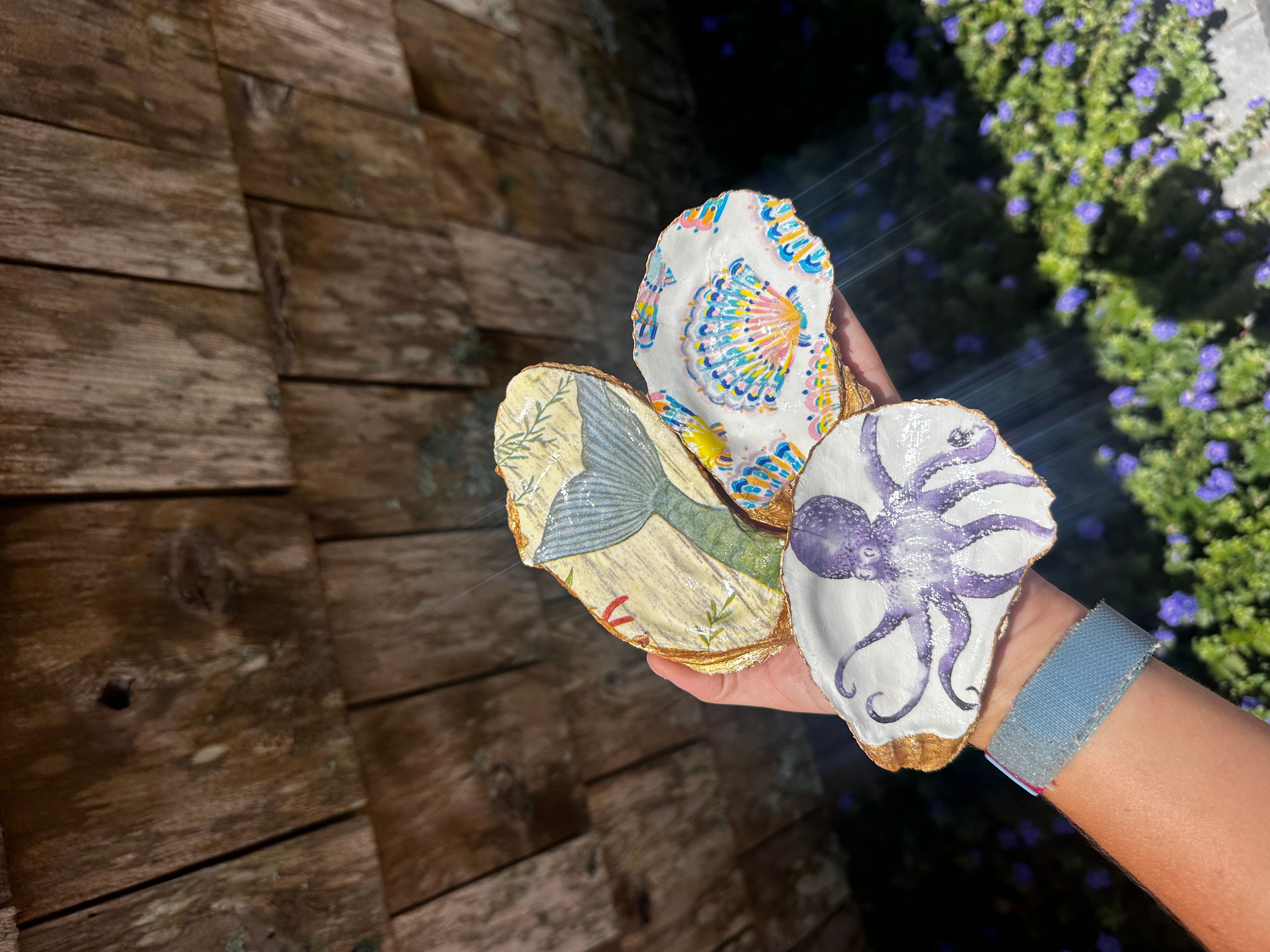 I am most proud of my oyster shell jewelry and creations. It feels so good to take something that is usually just discarded/ thrown away and giving it a second life. I love being able to upcycle the shells.