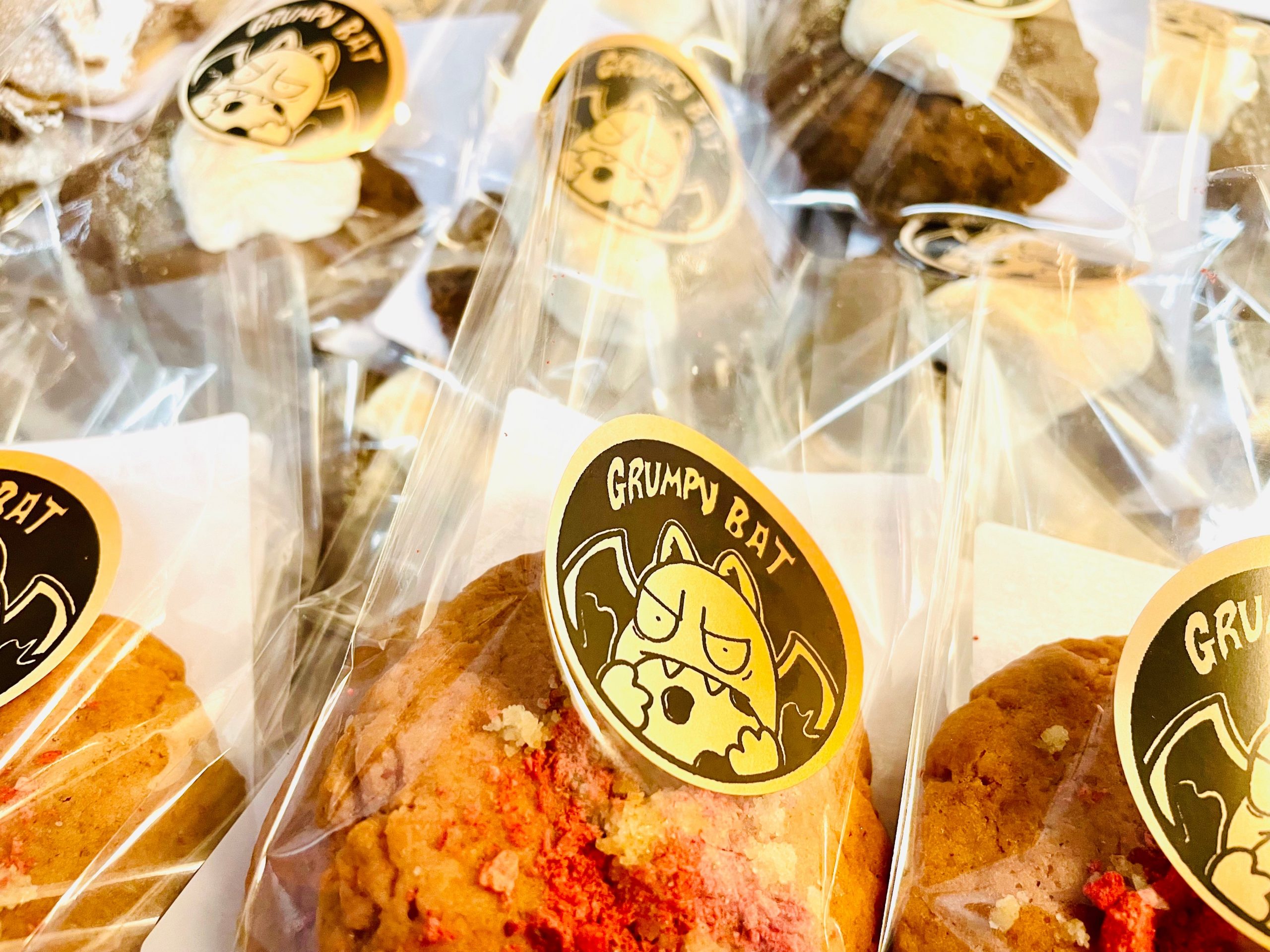 After graduation, I worked in a local bagel shop and bakery in the Savannah area as their head baker. While there, my food and baked goods were featured on Food Network’s Diners, Drive Ins, and Dives. Watching Guy Fieri taste my food was definitely a highlight of my baking journey. It was really the first time I realized I could build a company out of my passion. From there I began catering small cookie orders on the side to a local music venue, Graveface who had a major focus in all things goth, punk, and oddity. I’ve always loved Halloween and all things weird so I suppose this is where the idea for my company, Grumpy Bat Bakery grew out of.