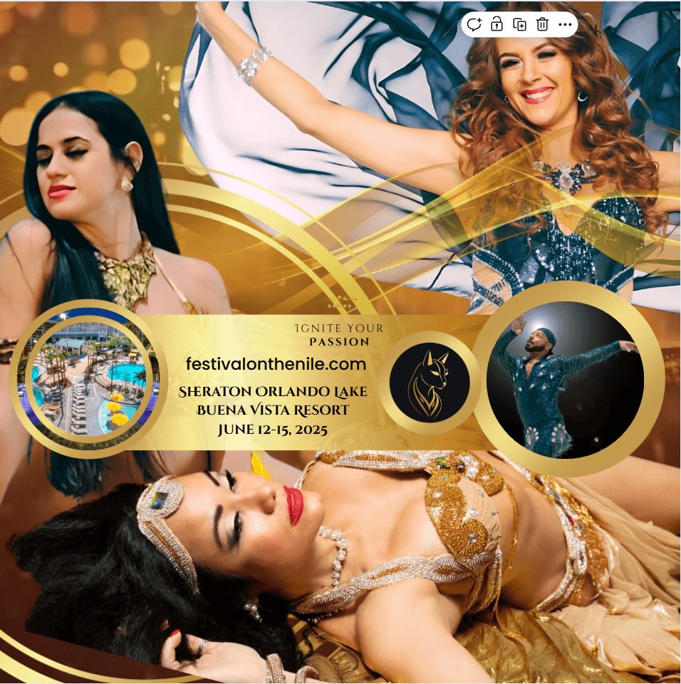 Under Gitana’s leadership, Festival on the Nile International became something dazzling—a four-day, multi-track, full-immersion dance intensive vacation held at the luxurious Sheraton Orlando Lake Buena Vista Resort. She brought in 13 national and international teachers, multiple bands, and world-class vendors. She raised the production to cinematic heights, with four-camera shoots, Las Vegas-style lighting, theatrical backdrops, concert tags, and elegant gala dinners. She created Oasis Dreams, a recorded Friday night show, and Raq the Pyramid, a Saturday night gala dinner and concert. She even brought two bands—Tony Tahan Trio from the East and Georges Lammam Ensemble from the West—together under one roof for a once-in-a-lifetime musical moment.