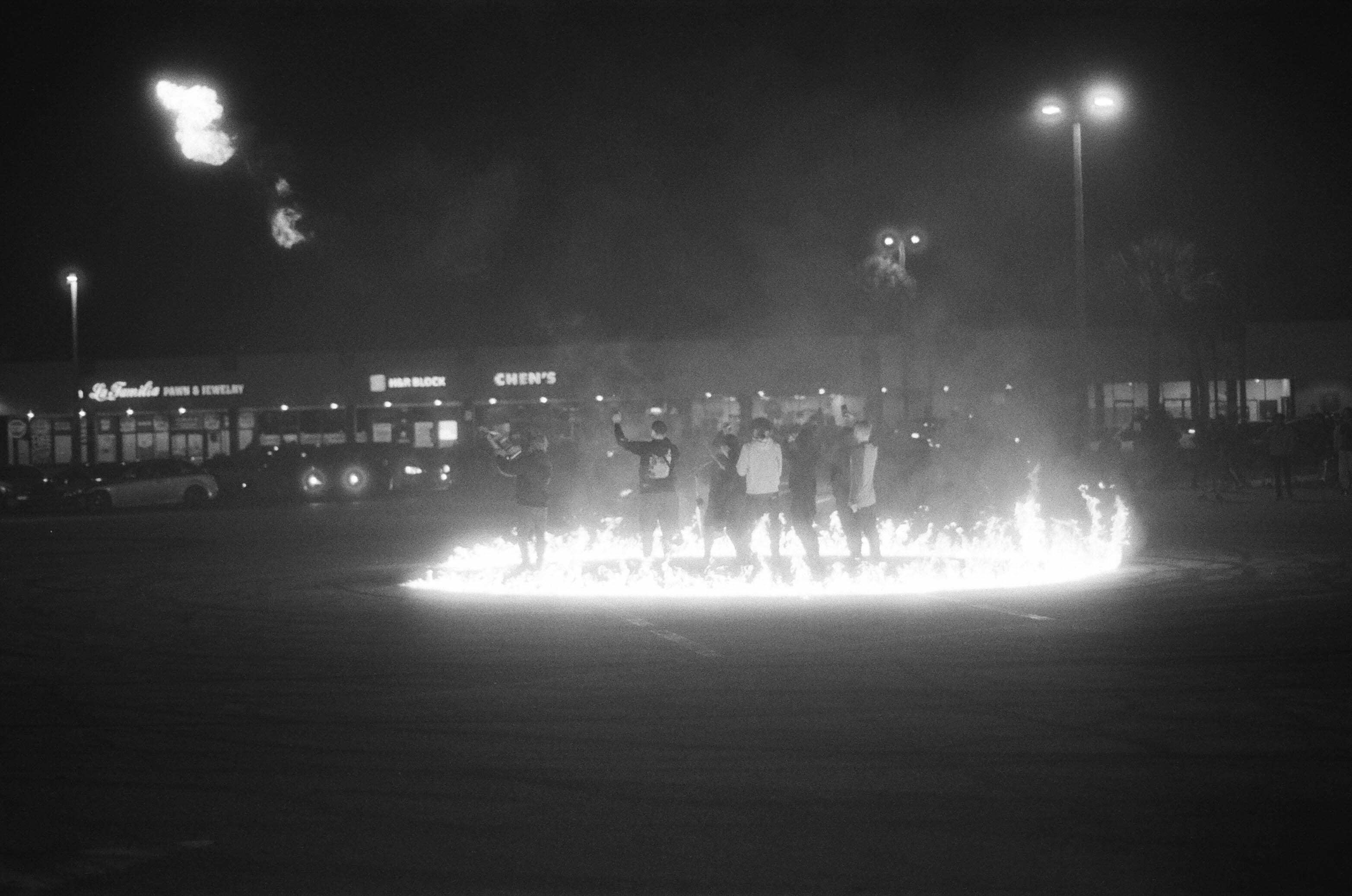 When I first began shooting film, I started completely manual, circumventing point-and-shoot cameras altogether. I had a basic understanding of exposure from studying cinema and shooting on a DSLR as a teenager, but had no true grasp of metering light and the demand of accuracy film desires. I view it now as a blessing, but I did not realize until about a year into shooting that there was an internal light meter in my camera. So, early practices for me warranted a quick eye for the type of light available in a room, approximating exposure based on practice, and shooting a roll with processing in mind, something akin to the principle of shooting motion for an edit. To make learning to shoot film more complicated for myself, my first major project was capturing the Sideshow/Takeover scene of Central Florida from 2022-2023, a car scene of intense, performance art-like car stunts in the dead of night. No light, just flamethrowers and fireworks. The dedication to building a car, and practicing how to handle it with ferocity behind a mask, kindled an affection for the loudly passionate as subject matter. It is one of my first instances of understanding the difference between a distant eye and the admiring lens.