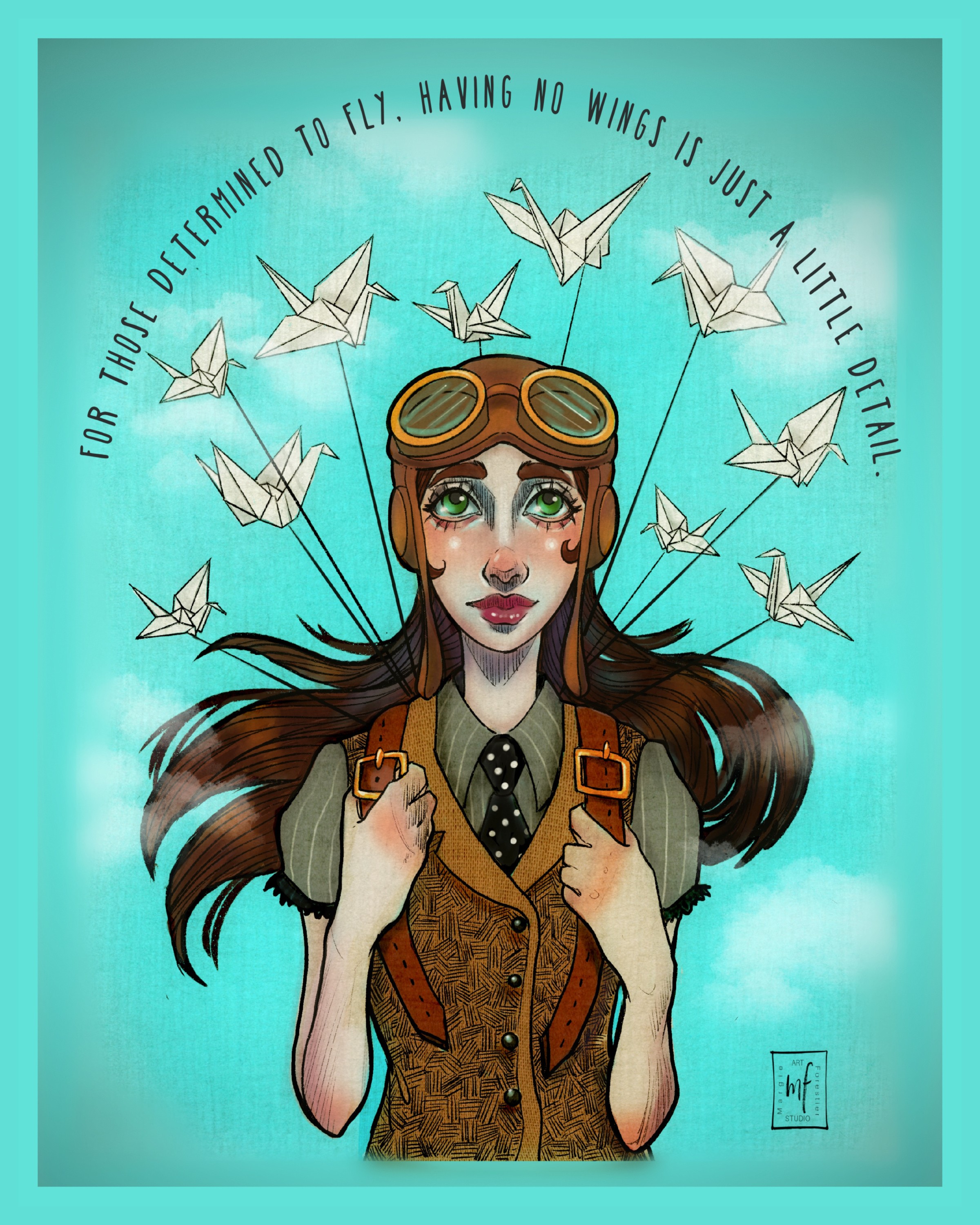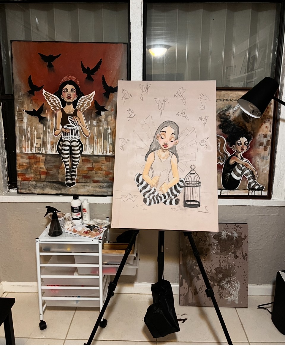 My heart desires to use my art to encourage and uplift others, especially those who have been through trauma and need that little extra reminder of hope. Through my whimsical characters and inspiring imagery, I hope my work motivates others to overcome obstacles and pursue their own dreams, capturing perseverance, hope, and possibility in every piece.