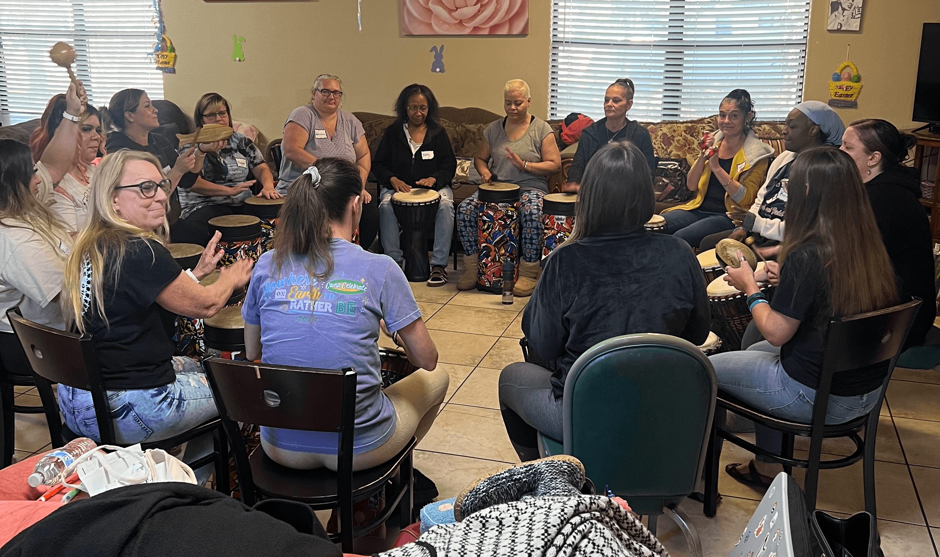 Miss Carol Gann was a guest at our very first DRUMBEAT performance at a women’s transitional house in Apopka. After hearing the powerful testimonies of the women, she saw the potential for something greater. It was her idea that if I started a nonprofit, I could reach so many more women with this transformative program. With her experience in establishing nonprofits, she offered to guide and support me through the process—and Drums in Recovery was born.