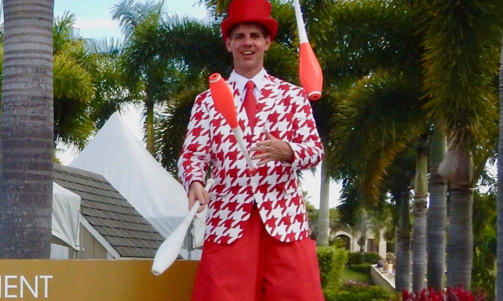 I attended the Ringling Bros. and Barnum & Bailey Clown College in Venice, Florida back in 1988. Upon graduating with a Bachelor of Fun Arts Degree, I was offered a contract to become a clown with “The Greatest Show On Earth.” I performed with the Ringling Bros. and Barnum & Bailey Circus through the end of 1997 and then moved to Orlando to pursue my dream of making a living as an entertainer “in the real world.” I soon discovered that stilt walking was valuable skill here in the Central Florida area & began working at Universal Studios as a stilt walker. I also became a toy demonstrator (sans stilts) at FAO Schwarz toy store on International Drive. Getting paid to play with toys in an amazing toy store was definitely a dream job. Other than the circus, this was the funnest job I’ve ever had. Then in 2002, the Gaylord Palms Resort hotel in Kissimmee opened, & they hired me to be a full-time stilt walker. I was there for 8 years when in 2010, the hotel did away with their entire in-house entertainment department. It was then that I decided to become my own boss & start my own stilt-walking business. I had a website made (www.StiltFun.com) and began promoting my stilt walking services to fairs, festivals, & entertainment agencies all throughout the state. My business has steadily grown year after year (except for 2020 when Covid hit), and now… nearly 13 years later… I’m still living my dream as a professional entertainer.