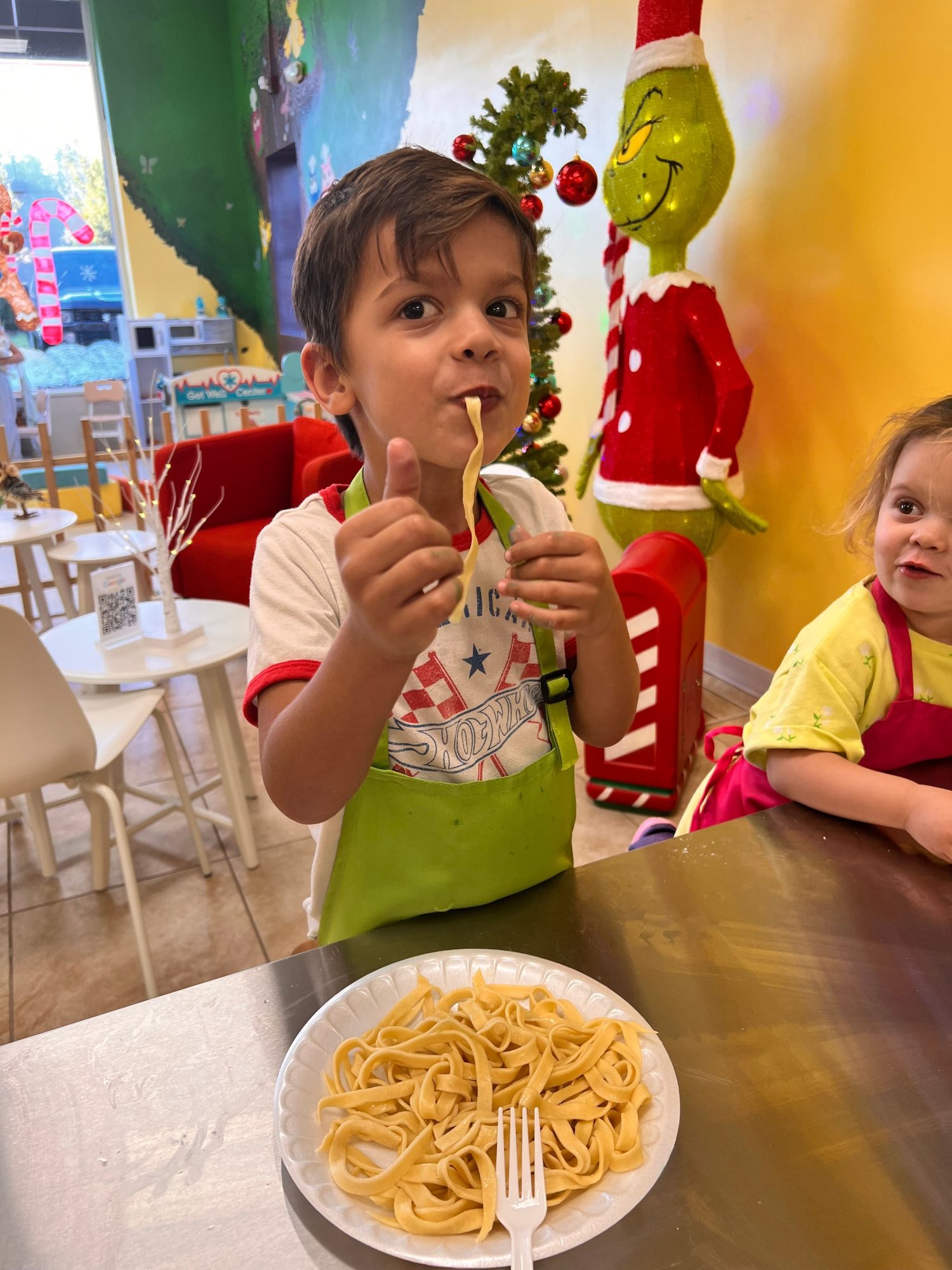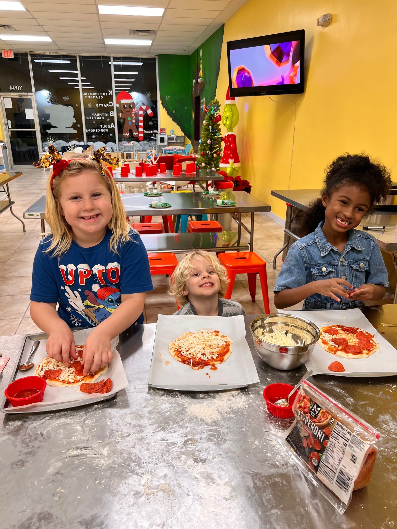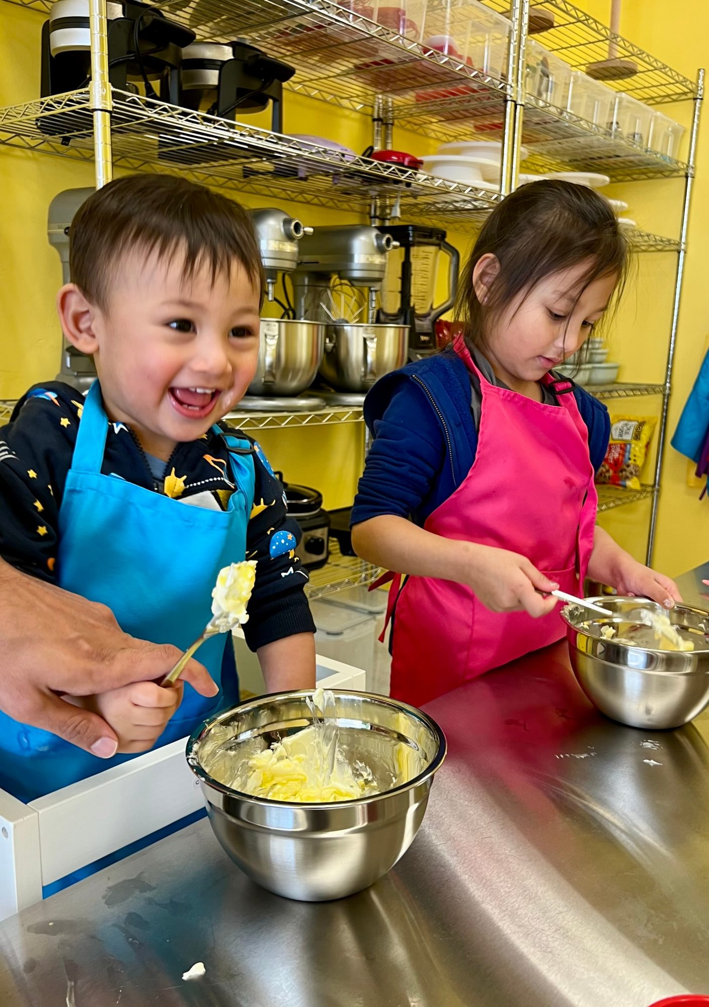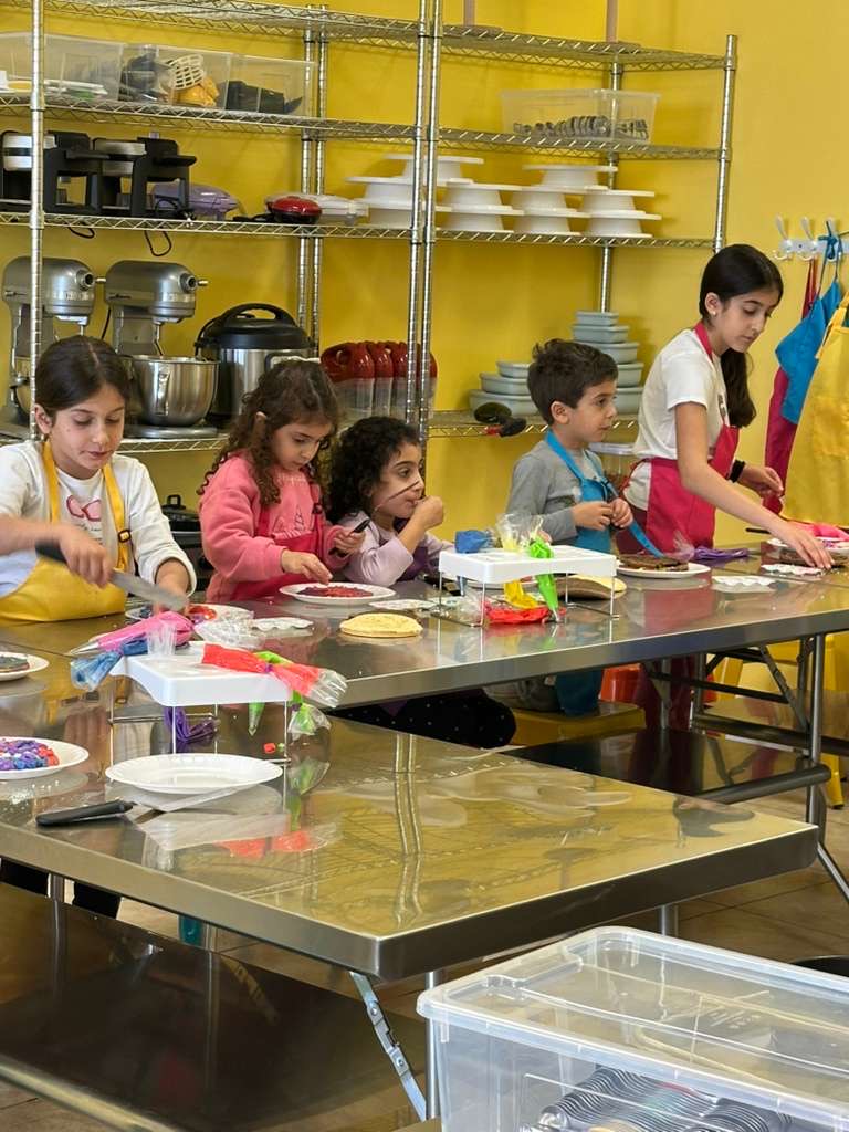 This studio is a place where kids don’t just watch cooking — they actually cook. Each child has their own station where they can mix, measure, roll dough, and create their own dish from scratch.