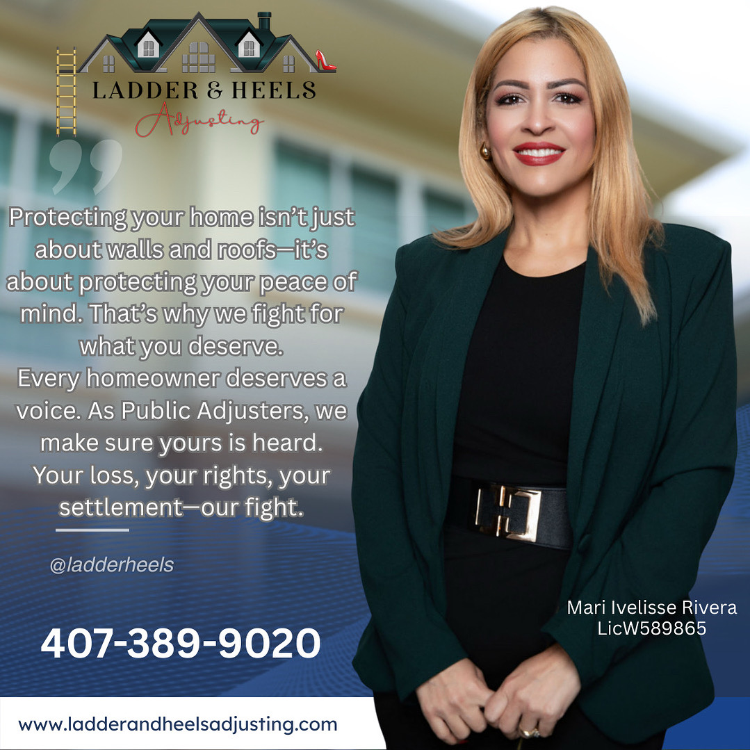 Our experience spans hurricane/wind and roof damage, water and plumbing/AC leaks, fire/smoke, mold, theft/vandalism, and other covered property losses; we also guide policyholders on property damage aspects of auto and certain liability-related claims. Founded in 2021 by Public Adjuster Mari Ivelisse Rivera, Ladder & Heels proves that women thrive in a traditionally male-dominated field. We operate with full compliance under Florida DFS rules, transparent contingency-based fees, and an education-first approach—so families are protected, properties are restored, and communities are empowered