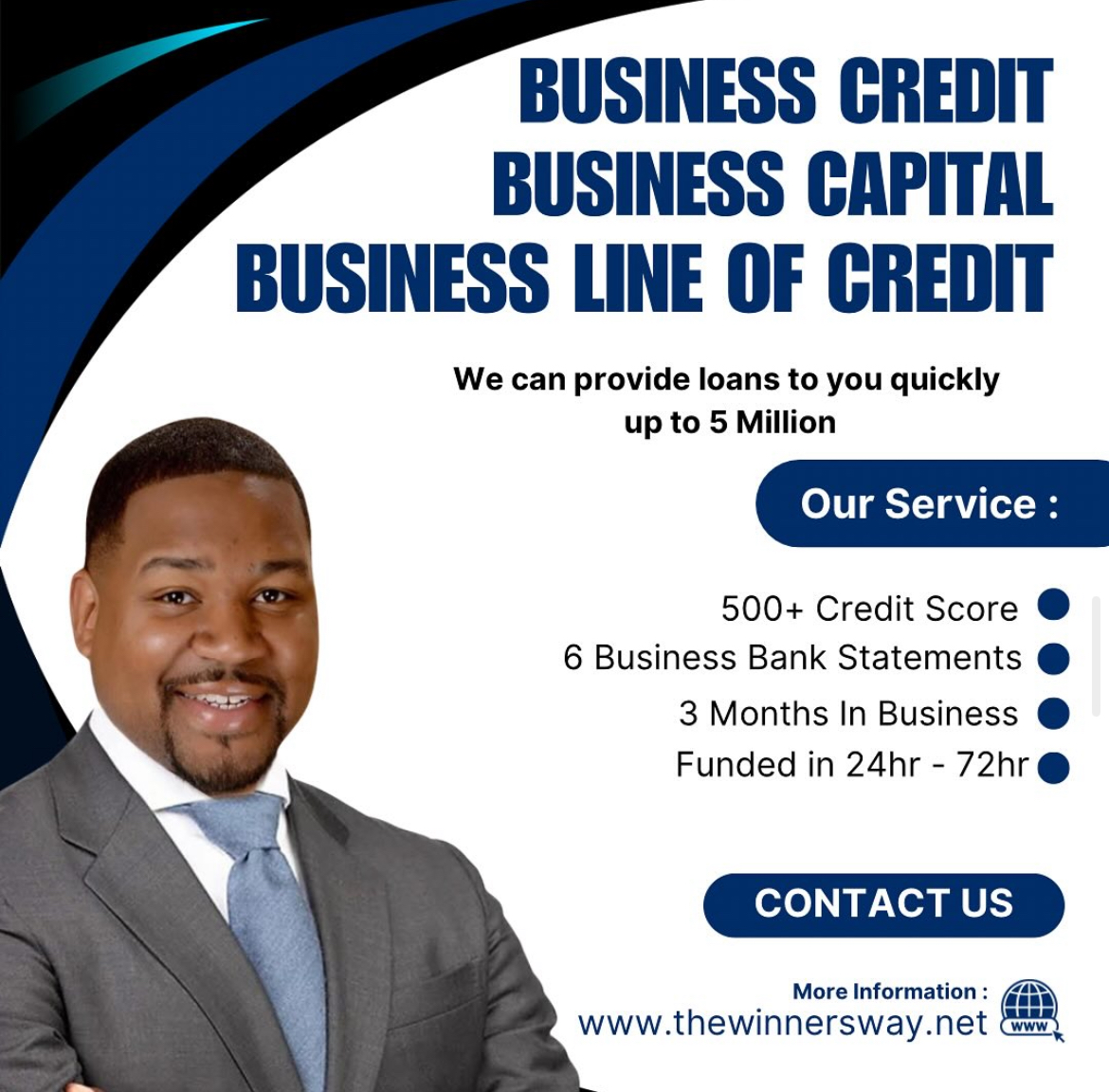The Winners Way Help Society with Personal Credit, Business Credit, Funding Up To 5million, which consist of business lines of credit, business credit, small business loans, capital.