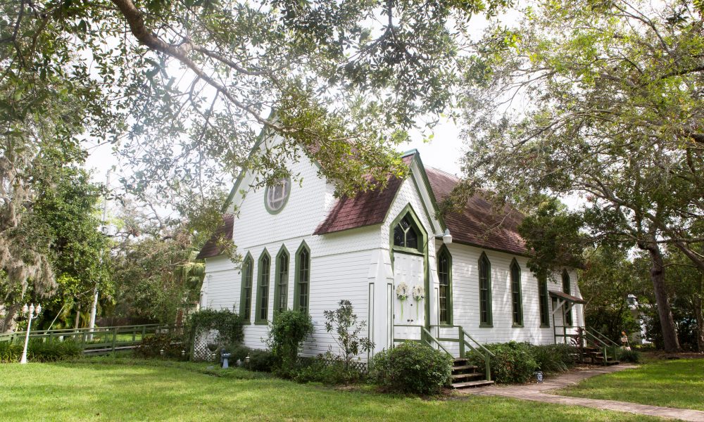 Andrews Memorial Chapel, an enchanting historic haven, is cradled in the heart of Hammock Park, Dunedin, Florida; crafted in 1888, this ethereal chapel is a testament to authentic early Florida Victorian church architecture, captivating hearts with its ageless charm. Once nestled on the corner of Scotland Street and Highland Avenue near Downtown Dunedin, this historic chapel witnessed the ebb and flow of time. In 1970, a story of love and preservation began as the Dunedin Historical Society emerged, championing the cause to rescue this historic gem. A delicate dance unfolded as the chapel, a beacon of Victorian grace, was gently halved to traverse the distance to its new home in Hammock Park. Through the passage of years, painstaking restoration efforts breathed life back into Andrews Memorial Chapel, earning it a cherished spot on the National Register of Historic Places in 1972. Today, Andrews Memorial Chapel is a timeless sanctuary, ready to weave your love story into its storied tapestry. With its Victorian grace and historic allure, it beckons as the perfect backdrop for those seeking the epitome of romance — be it a wedding, Christening, Baptism, or Celebration of Life.
