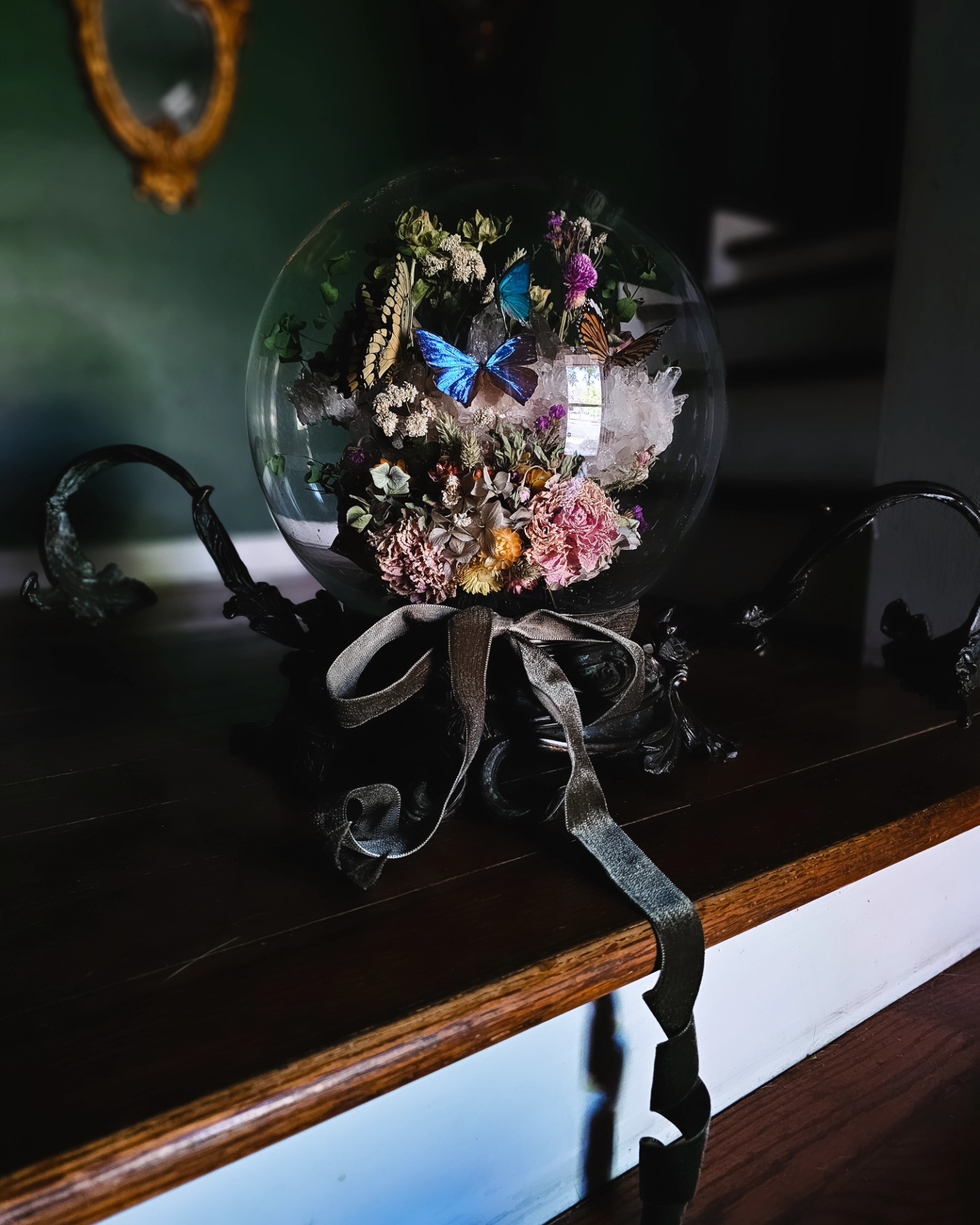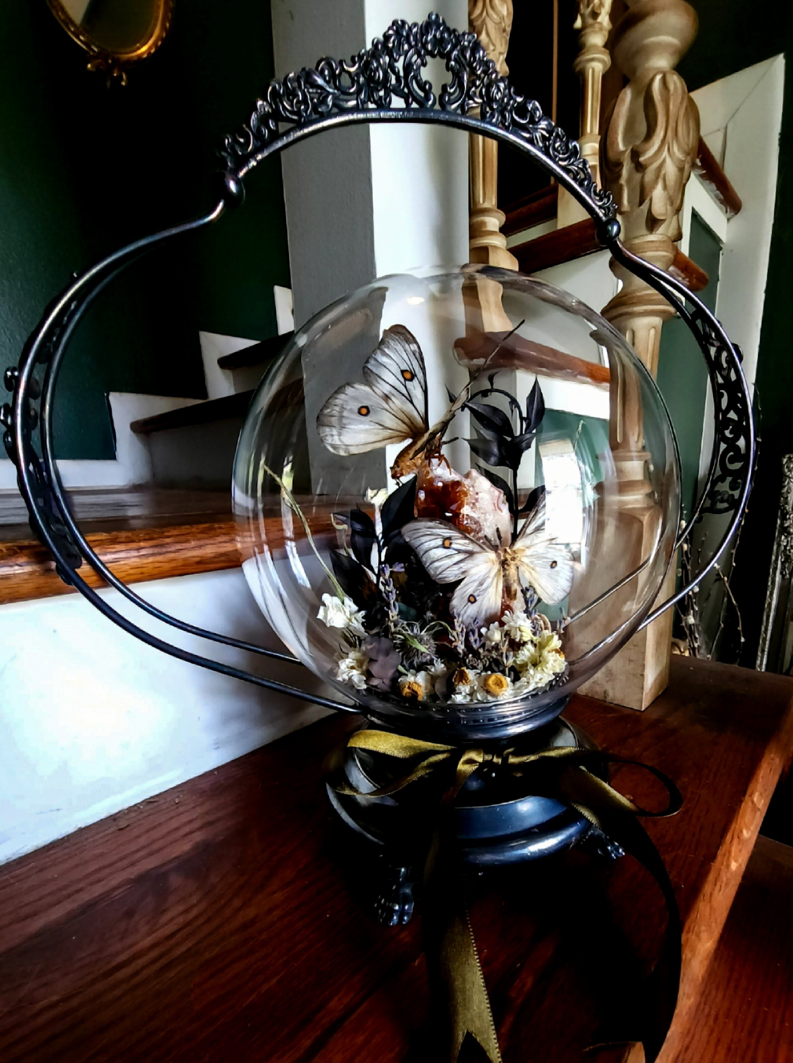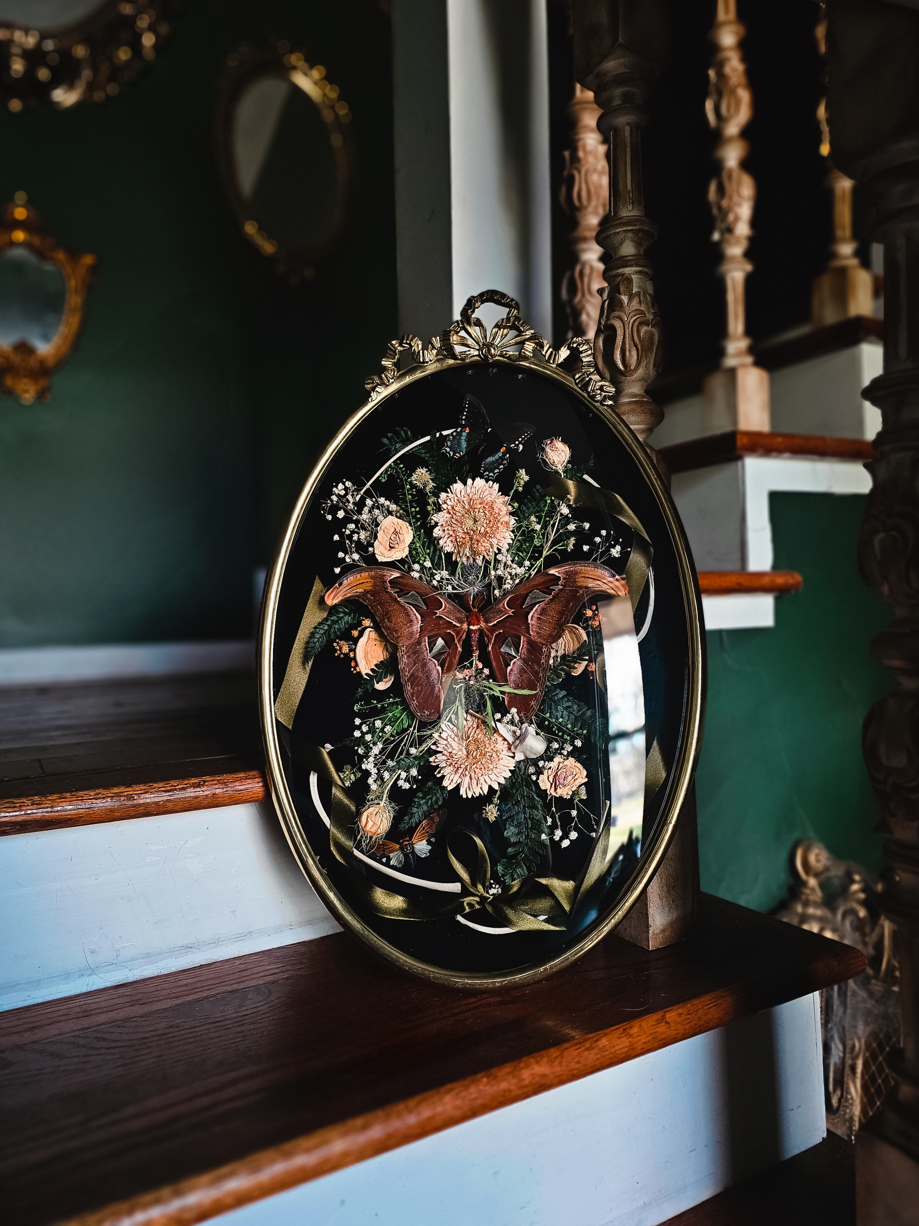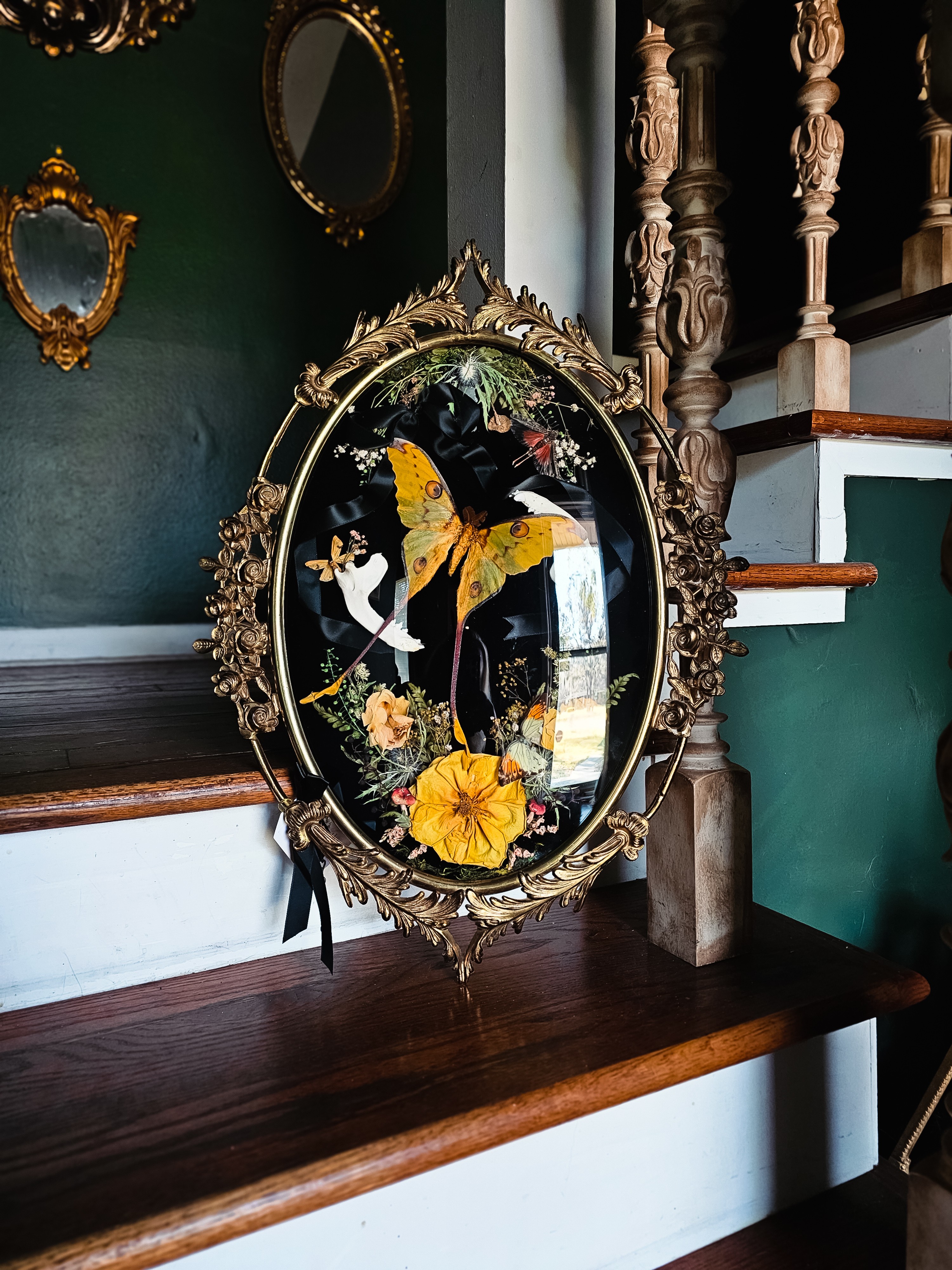 Monarch Manor Oddities is where dark whimsy meets natural wonder. Daniella Hernandez, the artist behind the brand, transforms ethically sourced insects, hand dried botanicals, and antique treasures into romantic, macabre art pieces. Think beautiful butterflies under glass, bone-adorned hair accessories, and vintage frames blooming with preserved life.
