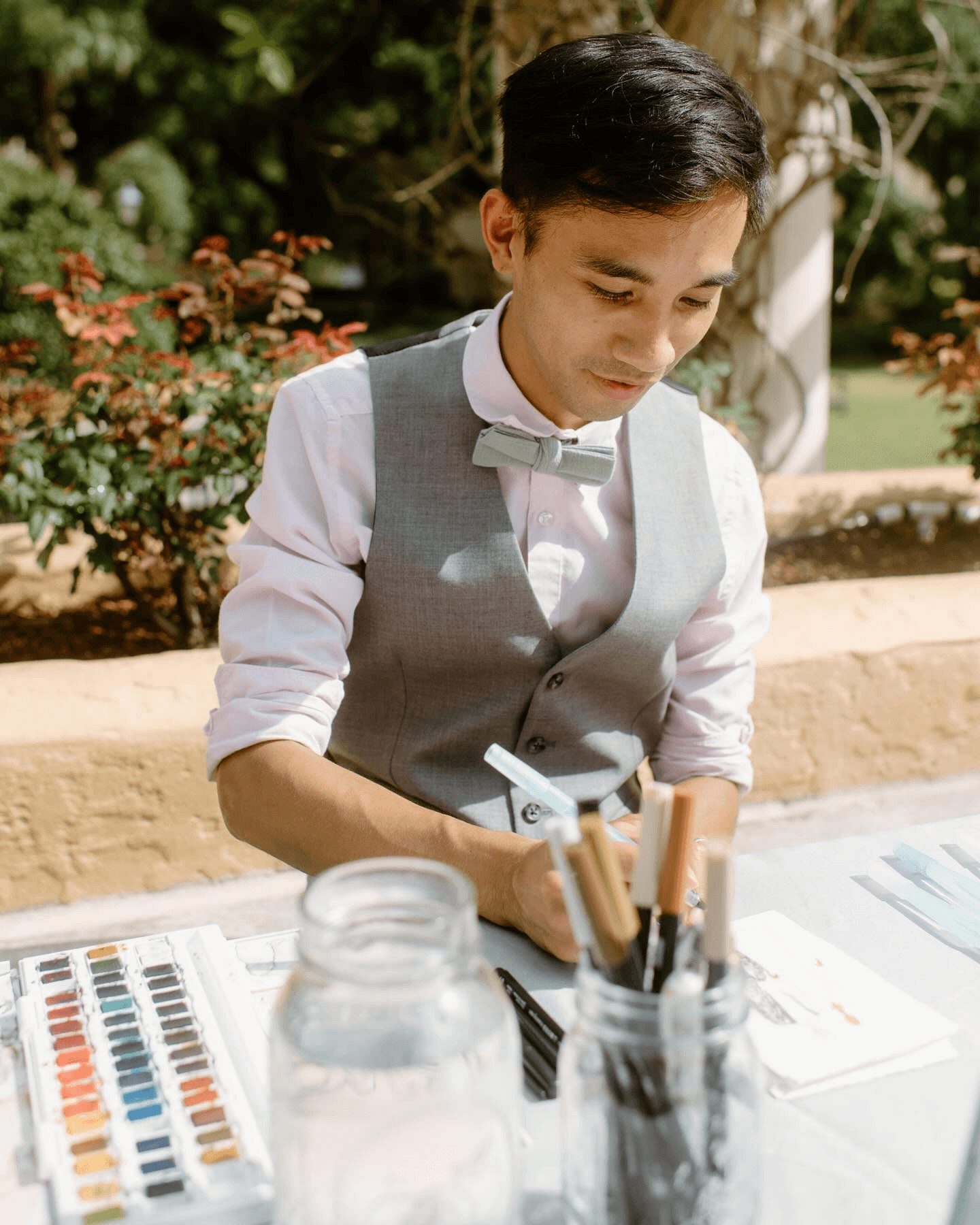 I like to describe my work as an artistic wedding and event service to create art, signage, and stationery that is unique to every person. I specialize in three spaces: live watercolor guest portraits, live calligraphy, and day-of signage & stationery.