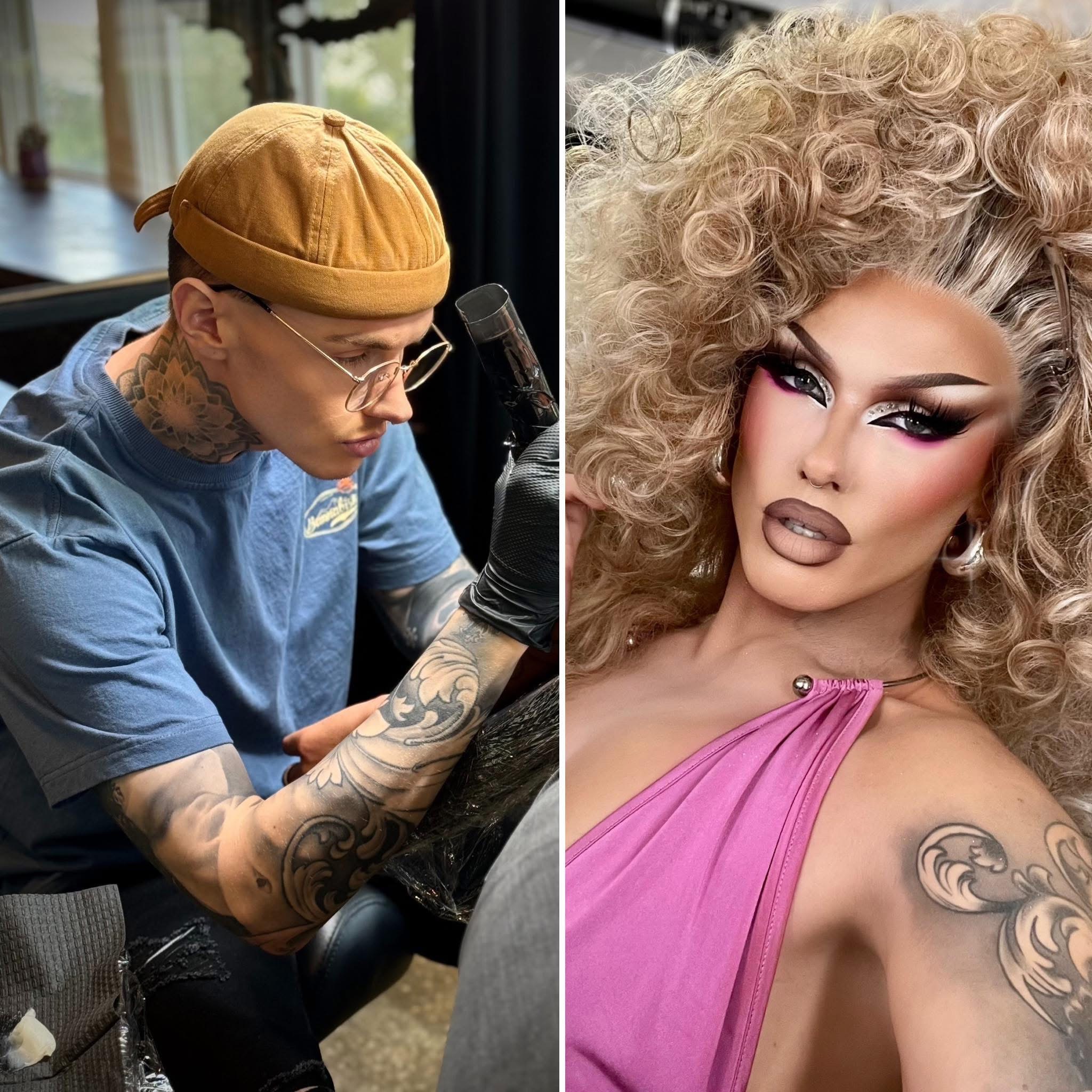 Oh, there have been several role models in my life along the way. I’ve shared my story with countless women I encounter, normally the Mother’s of my close friends who I’ve made along the way. They always take me in as their “adopted child”. Many of these women I owe my life to, whether it was a hot meal or a place to sleep when I had absolutely nothing. My tattoo mentor and I met in 2018 when I was serving tables, which is where I finally got my start in the tattoo industry. I’m thankful for him taking a chance on me, despite me being a black sheep in this industry. It’s not common to see a gay tattoo artist these days, especially one that is also a drag queen. It’s really quite the combo!