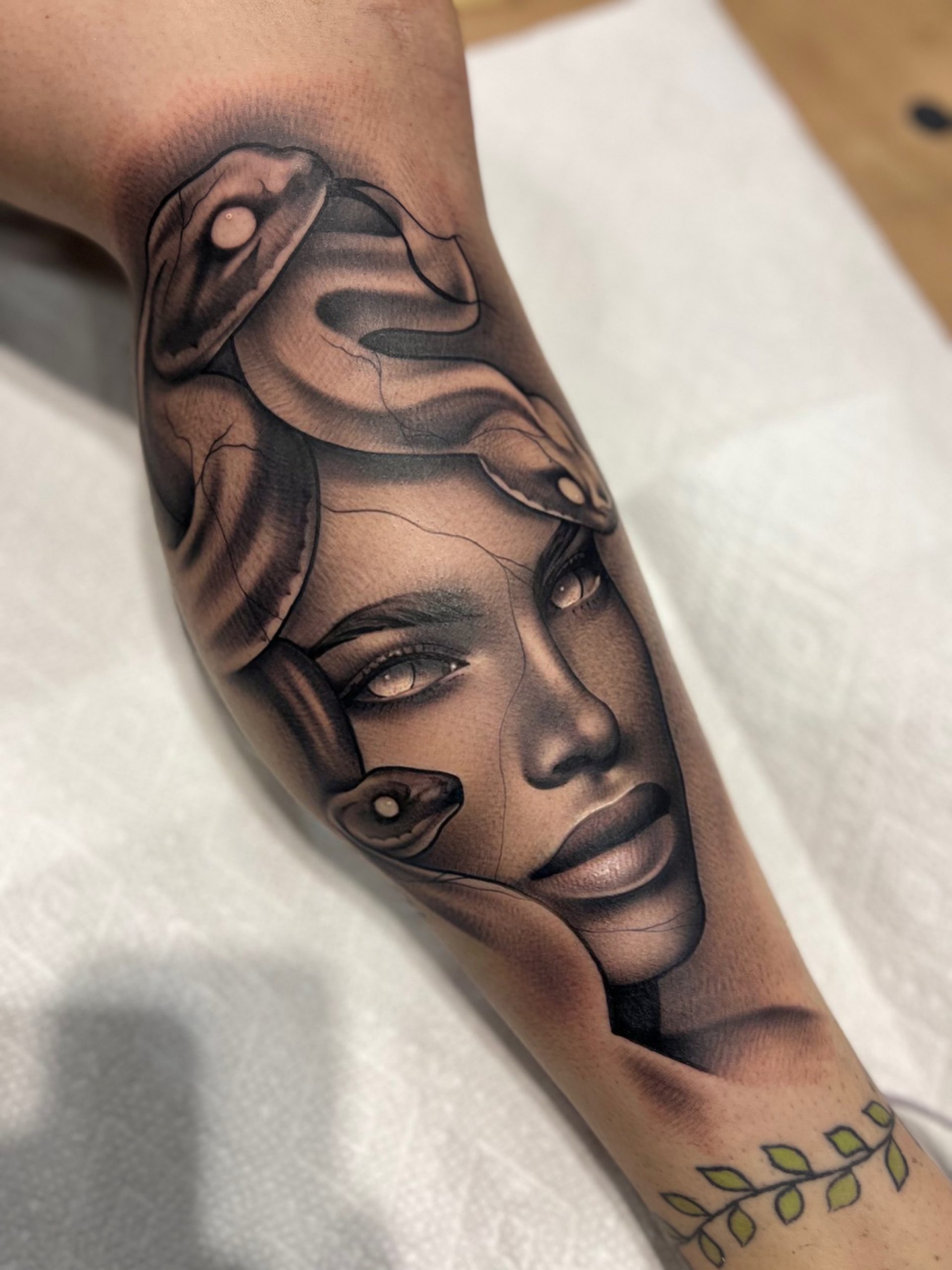 So in the day time I specialize in black and grey realism. In the night time I specialize in being the prettiest drag queen to ever exist… Hahaha, just joking… Well, not really.