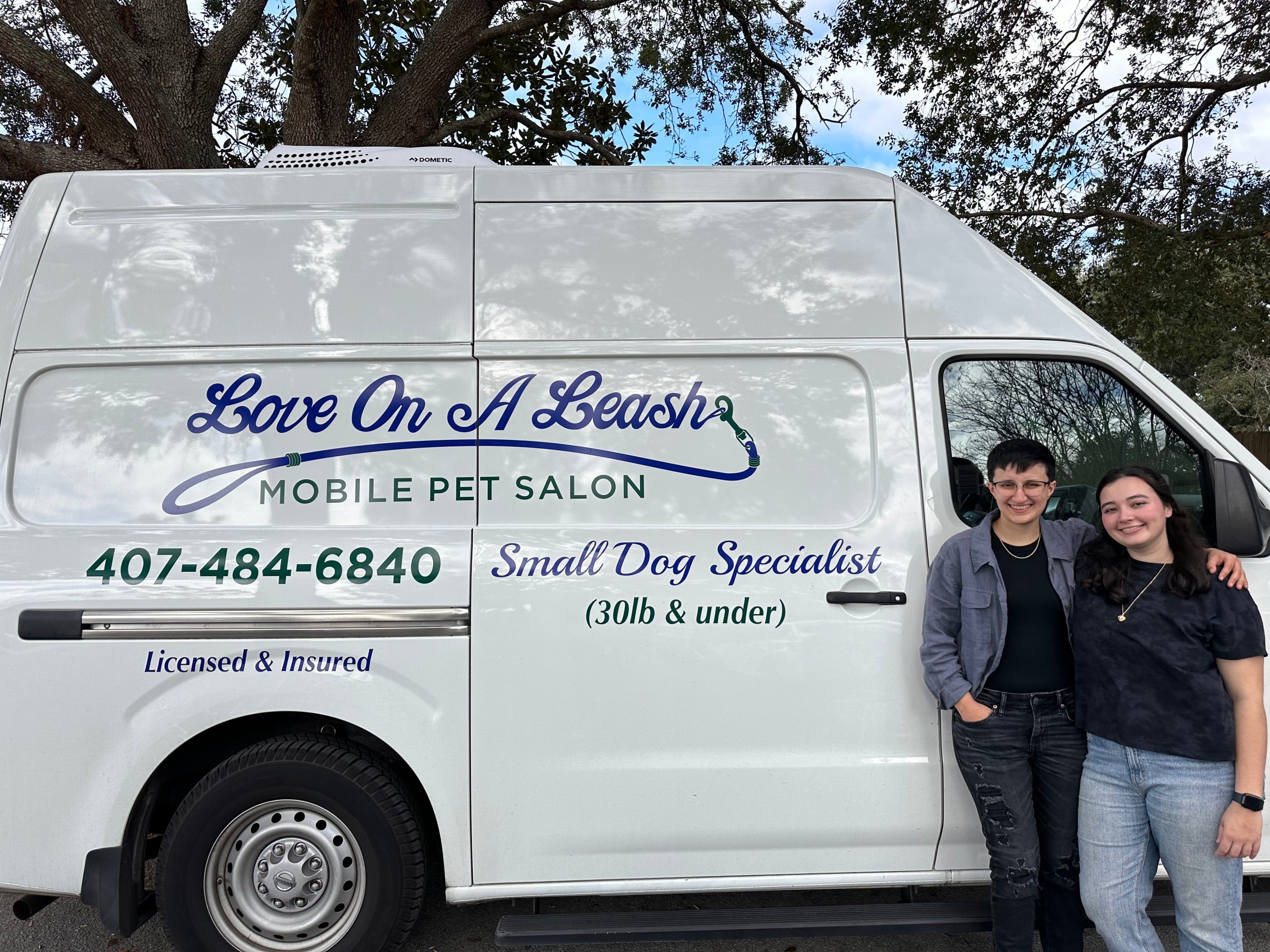 I am a dog groomer, I specialize in all breeds of dogs. We’re known for smaller dogs and work in all Lake Nona and surrounding areas. We’re most proud of running the business together as a young queer couple. What sets us apart from other companies is our unique set of skills. Mak runs all business aspects while I groom. We have an amazing certified groomer, Kim. She has been working with love on a leash for around 3 years. She has made a huge impact on our decision to buy the business. Clients love her and specifically request her because of her skills and personality. Our communication level with customers also sets us apart from other companies. We are always honest with our clients and have quick response times. However, our main difference is our attention to safety. We prioritize dog safety more than anything else. We are always in constant communication with the clients on how their dogs did during the groom and if anything needs to change or how we can make the dog more comfortable.