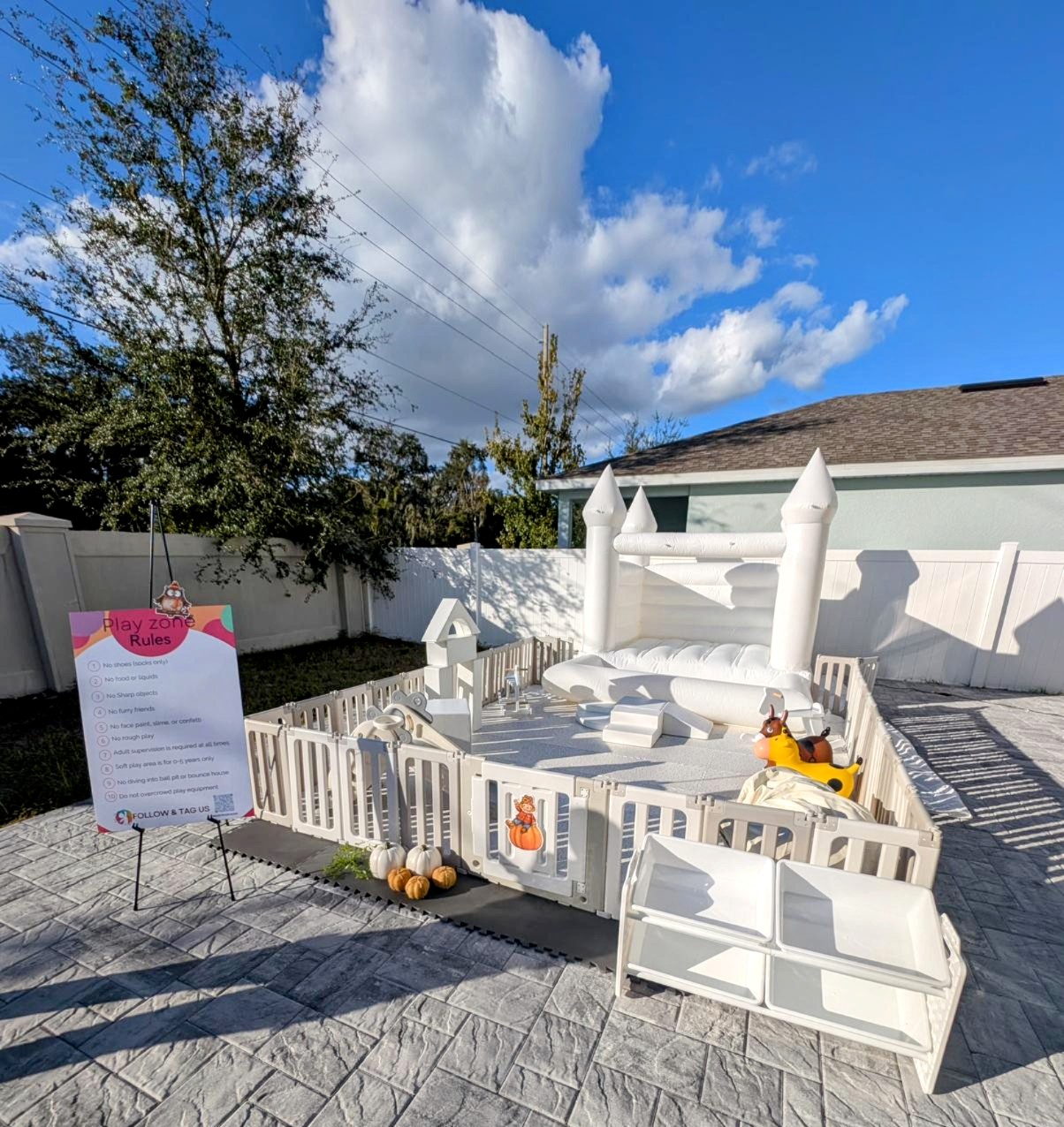 At Bouncy Bliss, we focus on the fun of all children, but especially the little ones. We have soft play areas, a safe space where younger children can play while giving moms a break to enjoy the event without worry. In addition, we offer a crafting area and a coloring wall station to entertain the kids and spark their creativity.