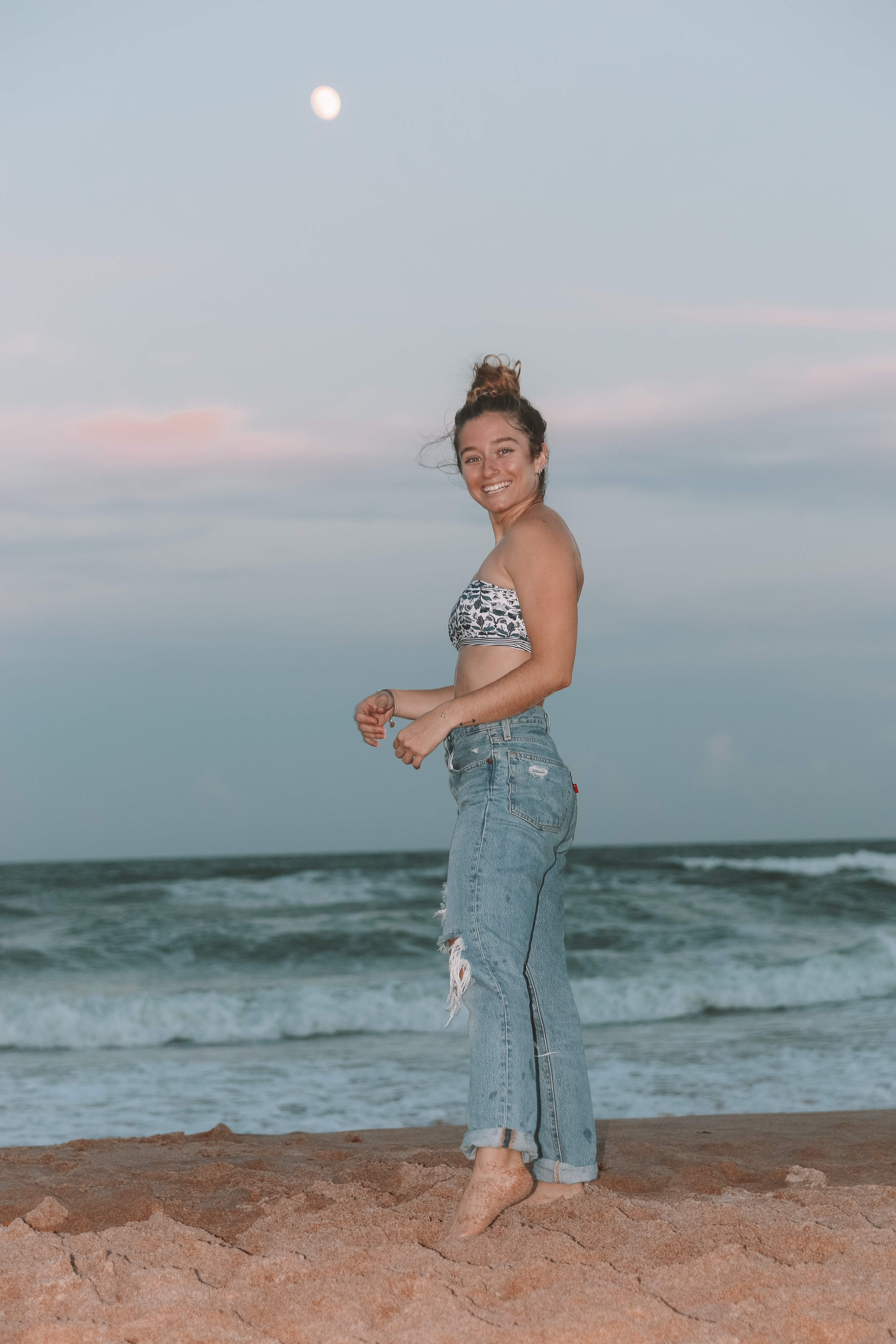 I grew up on a peninsula, which can be defined as a piece of land almost surrounded by water or projecting out into a body of water. I was never more than one block away from both the beach and the Intracoastal river waterway. And to this day, I still live on that same exact peninsula on the river, which is one block away from the ocean, about a 5- to 7-minute walk. I always knew that my career would somehow involve the beach that I had grown to love, but I had no idea that I would be lucky enough to paint versions of it. My first job was as a food runner at a beach resort where I would serve tourists who were on the pool deck or lounging in chairs on the beach sand. My next job was at our local Ormond Beach Surf Shop, Maui Nix, where I ended up working for about three years because I loved it so much. It was across the street from the ocean, and we would do free surfing lessons on Saturday mornings. It was truly a dream. Once I got a little older, I was still working at the surf shop and got promoted to manager. I realized I should probably go to college, so I took four online classes in marketing and got a simple marketing certificate. I really wanted to move forward and get my AA, but I also really wanted to learn from the real world. So, I struggled with the thought of maybe going to school full-time or pursuing a full-time office job in the marketing realm (which would sadly deviate from my amazing surf shop gig).