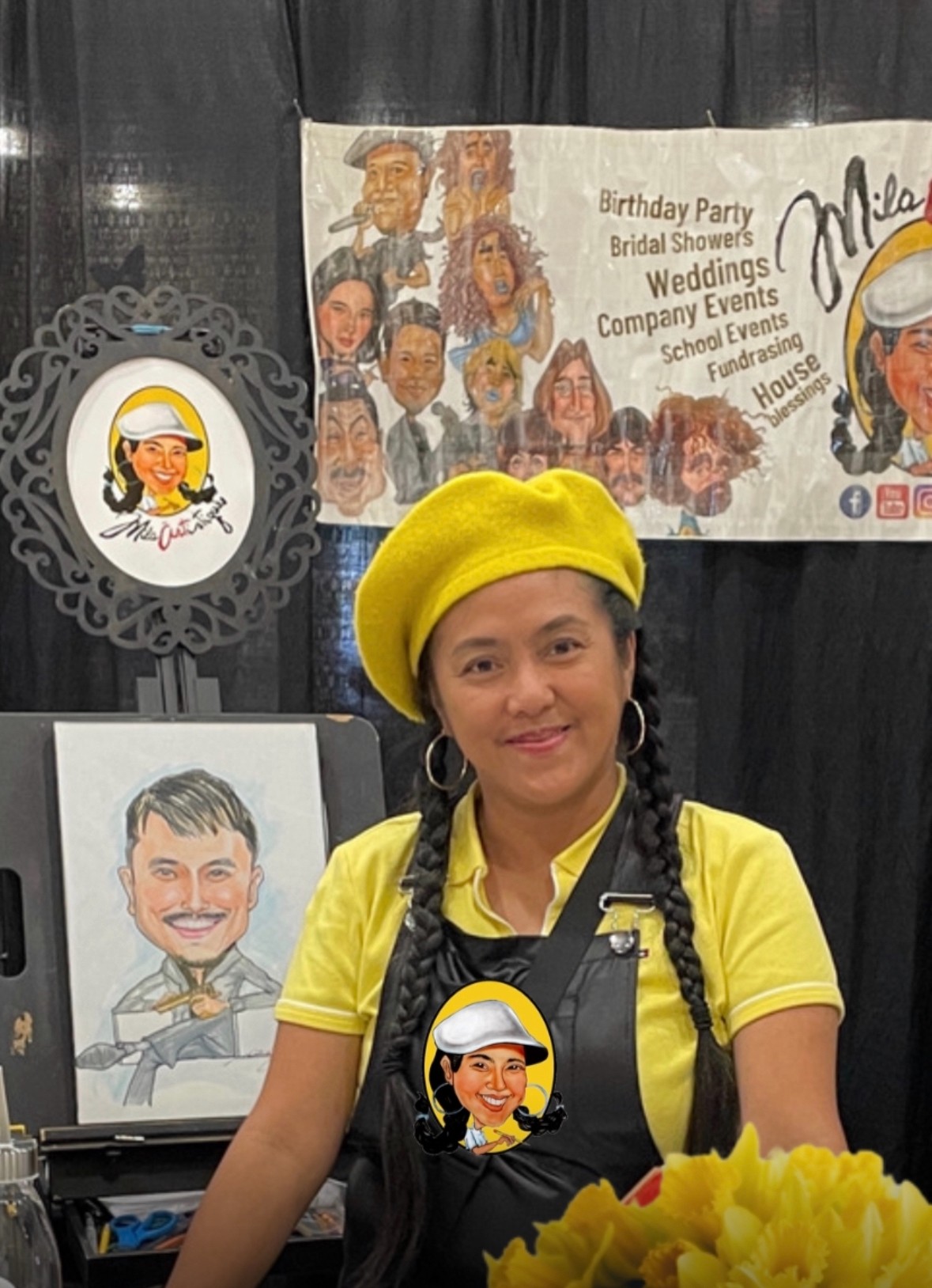 Today, MilaARTistique LLC offers custom portraits, caricatures, mobile art workshops, and events that combine creativity with healing. A portion of all proceeds supports Filipino American Cancer Care (FACC), which stood by me during chemotherapy and remains close to my heart.