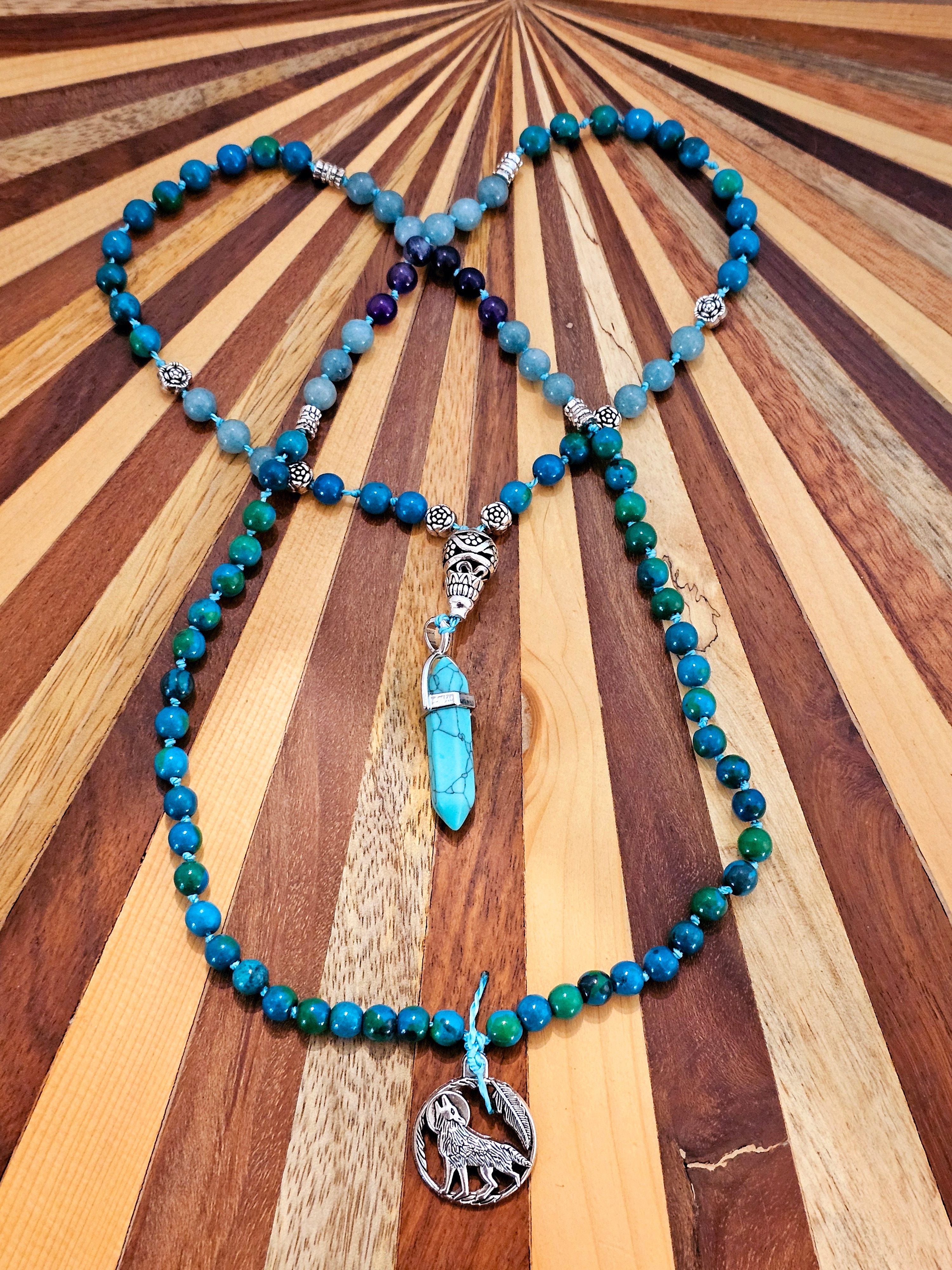I am best known for my custom mala’s. A mala in an infinite string of 108 beads used as a meditation and intentional setting tool. I make one-of-a-kind pieces for people, based on their medical history and what they are wanting to manifest in their lives. I teach at retreats, lead group intention-setting practices that focus on healing ourselves and the world among a variety of other master classes around self-healing with gemstone jewelry.