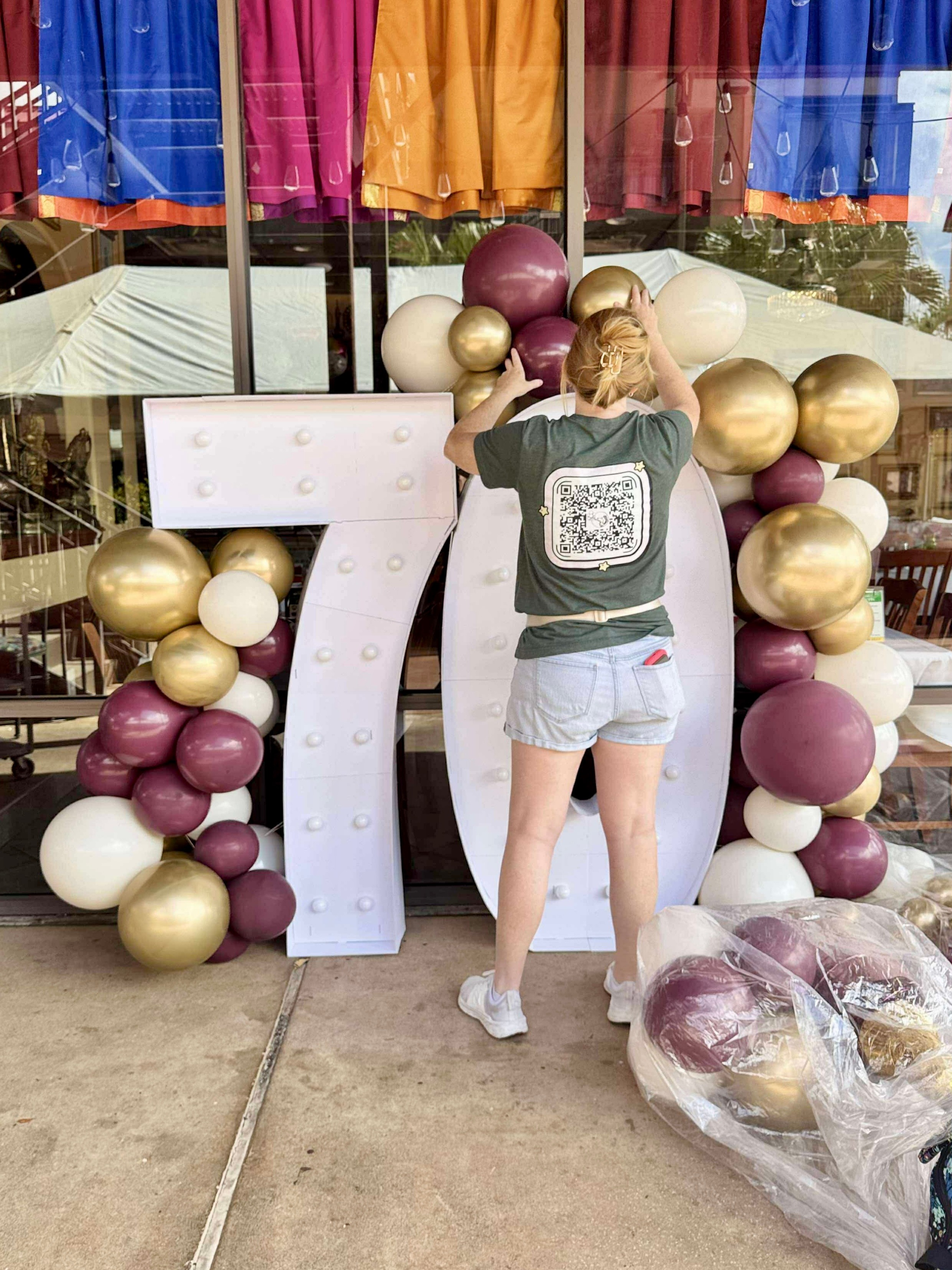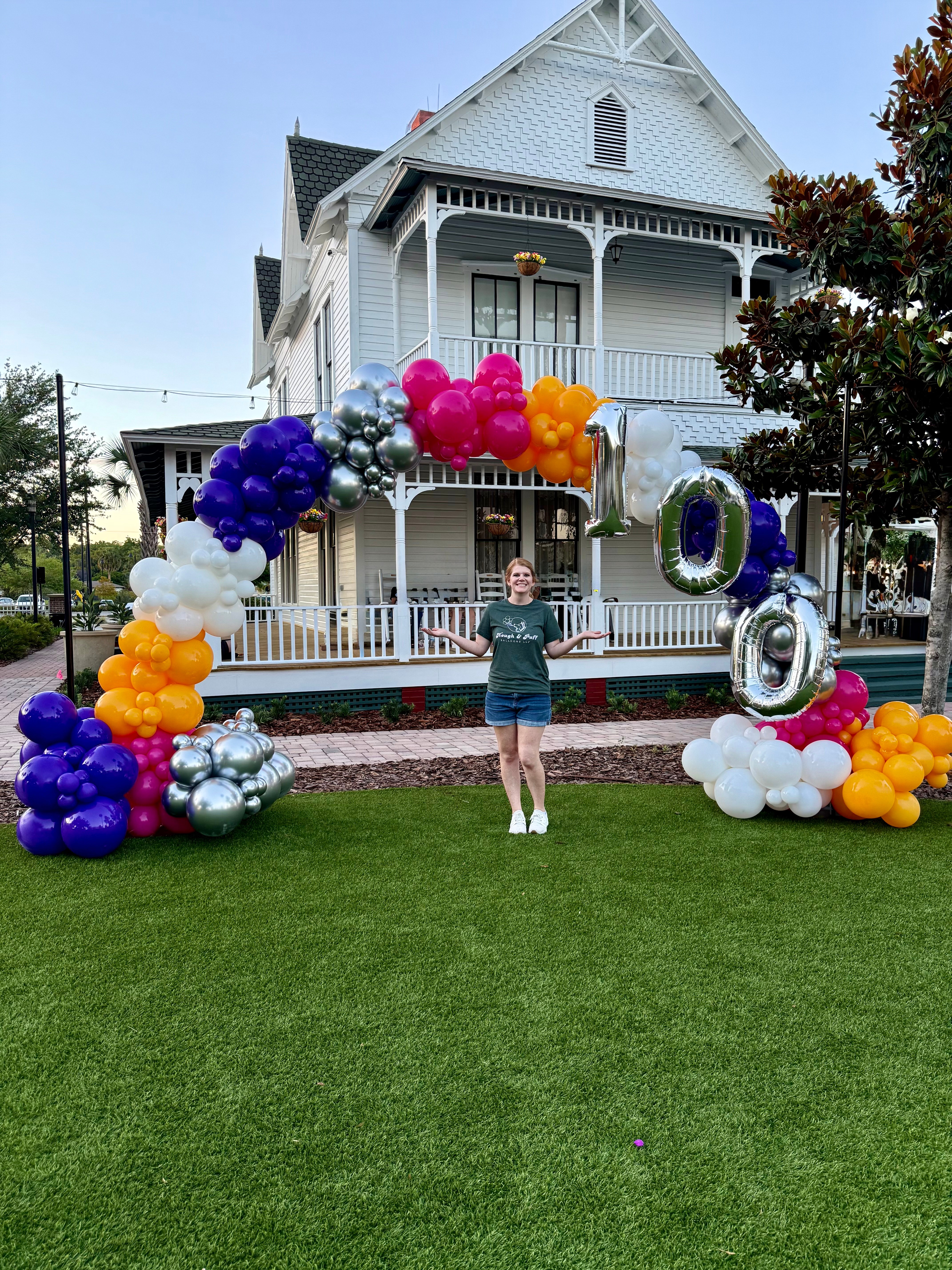 I am a balloon artist/stylist and I would say I specialize in organic balloon decor, unique themed jumbo number stacks and crazy towers, but I love the variety of balloon decor and enjoy the opportunity to make all sorts of different balloon decorations. The majority of orders I have coming in are for custom organic balloon installations where I deliver and install balloons on site. I do offer a more budget friendly option of grab & go balloon garlands where I fully create the garland, provide all the necessary hanging materials and instructions, and the client comes to me to pick those up and take them home to hang/style it as they wish. I truly enjoy the variety of balloon decor and not boxing myself into one specific type of balloon decor. One day I’m making a Bluey jumbo stack for a 1st birthday party, and the next day i’m making a custom Grand Opening balloon installation for Jeff’s Bagel Run. The type of balloon decor requested changes on a daily basis and that’s what I love! It’s never monotonous or the same, as no two creations will ever be exactly alike, and I’m always learning and implementing new techniques to make balloon decor that fit’s the unique needs of my clients.