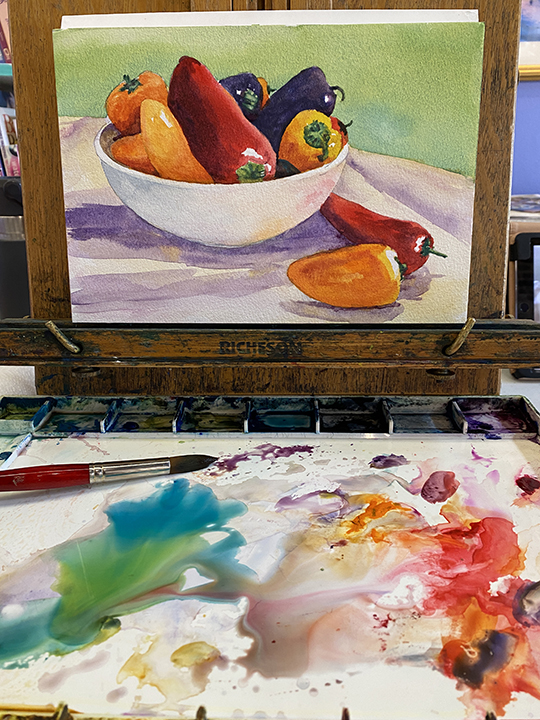 I paint primary with watercolor pigments on watercolor paper, but have also created many paintings with oil and acrylic paints. I feel that watercolor gives me the opportunity for more expressive freedom. It is less predictable than oil and acrylics and I can achieve various effects that can’t be created with other mediums. I have this love for painting on location, so I take my painting supplies with me and I always find time to paint the local landscape. This is called “Plein Air” painting. It is French for “Open Air” and has become a popular movement in artists groups growing in popularity during the last 20 years. I became involved in “Plein Air” events that were organized in Florida. These events included 20-30 artists painting in cities, towns and areas in anticipation of selling the completed paintings to the public. Proceeds of the sales of the paintings would benefit local organizations that were trying to raise funds to benefit the community or specific environmental causes. These include museums, nature centers, and organizations to protect natural & scenic rivers. It is always great being able to give back to the community through involvement in the arts.