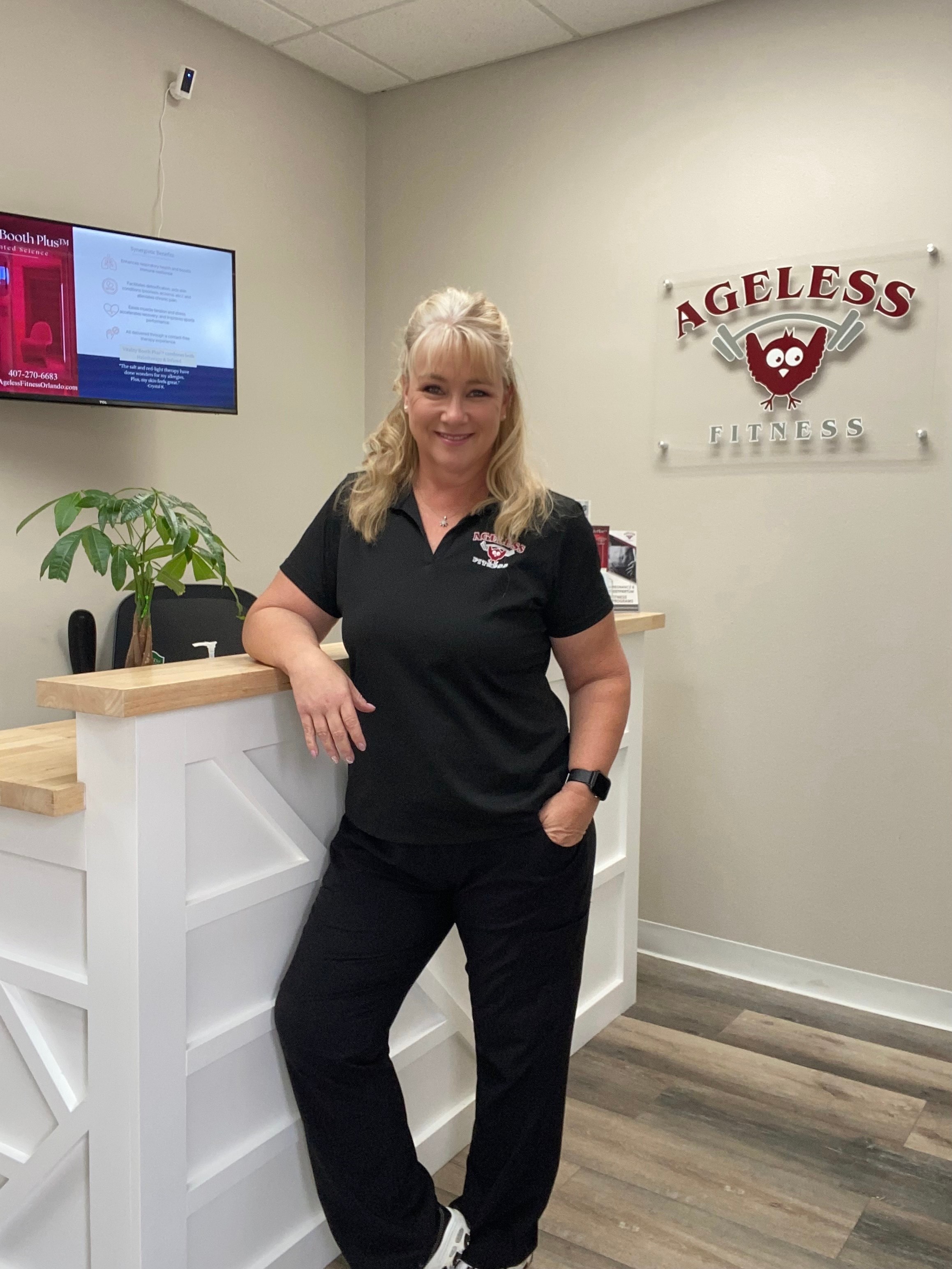 At Ageless Fitness, we serve clients in various stages of life, offering specialized services like Menopause Fitness Coaching, Pregnancy and Postpartum Corrective Exercise, and Senior Fitness. We also have programs like Stretch Therapy to improve flexibility, reduce pain, and enhance athletic performance. Our Red Light and Salt Therapy Vitality Booth offers an innovative approach to respiratory and skin health, bringing benefits to clients with sinus congestion, asthma, COPD, and skin conditions that include improving fine lines and wrinkles, acne, psoriasis and eczema.