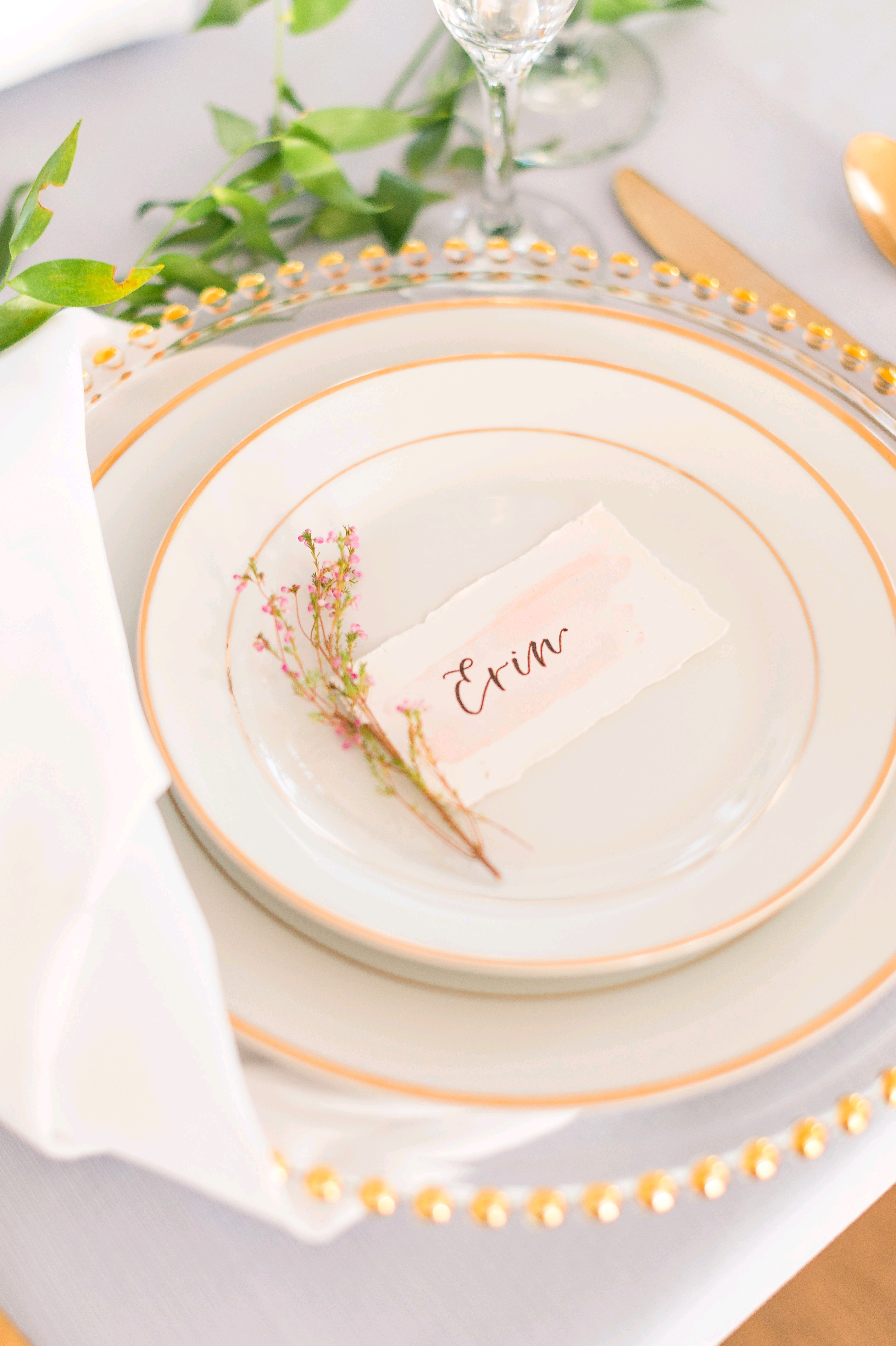 Photographer unknown- Gold beaded charger plates with white napkin