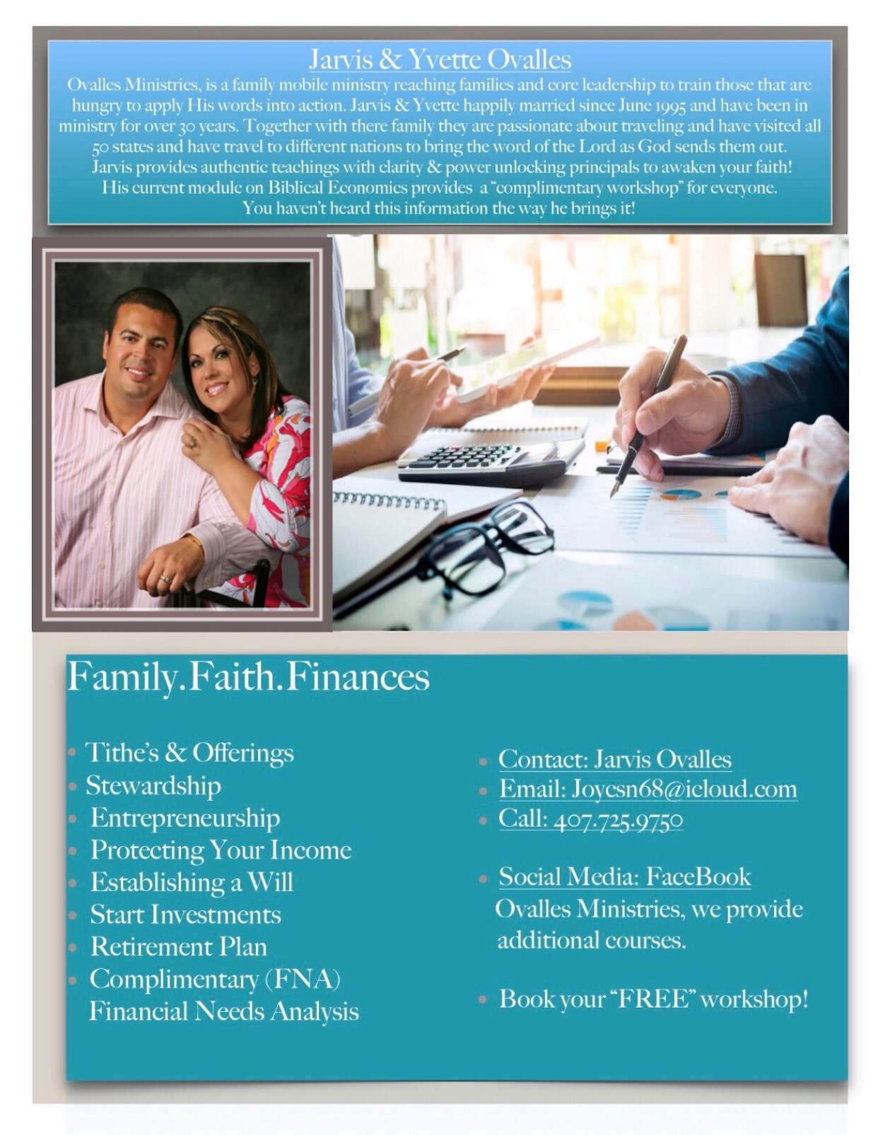 I teach people how to protect their income with life insurance, how to invest for now, tomorrow and for retirement. I teach people how to get out of debt and remain debt free.