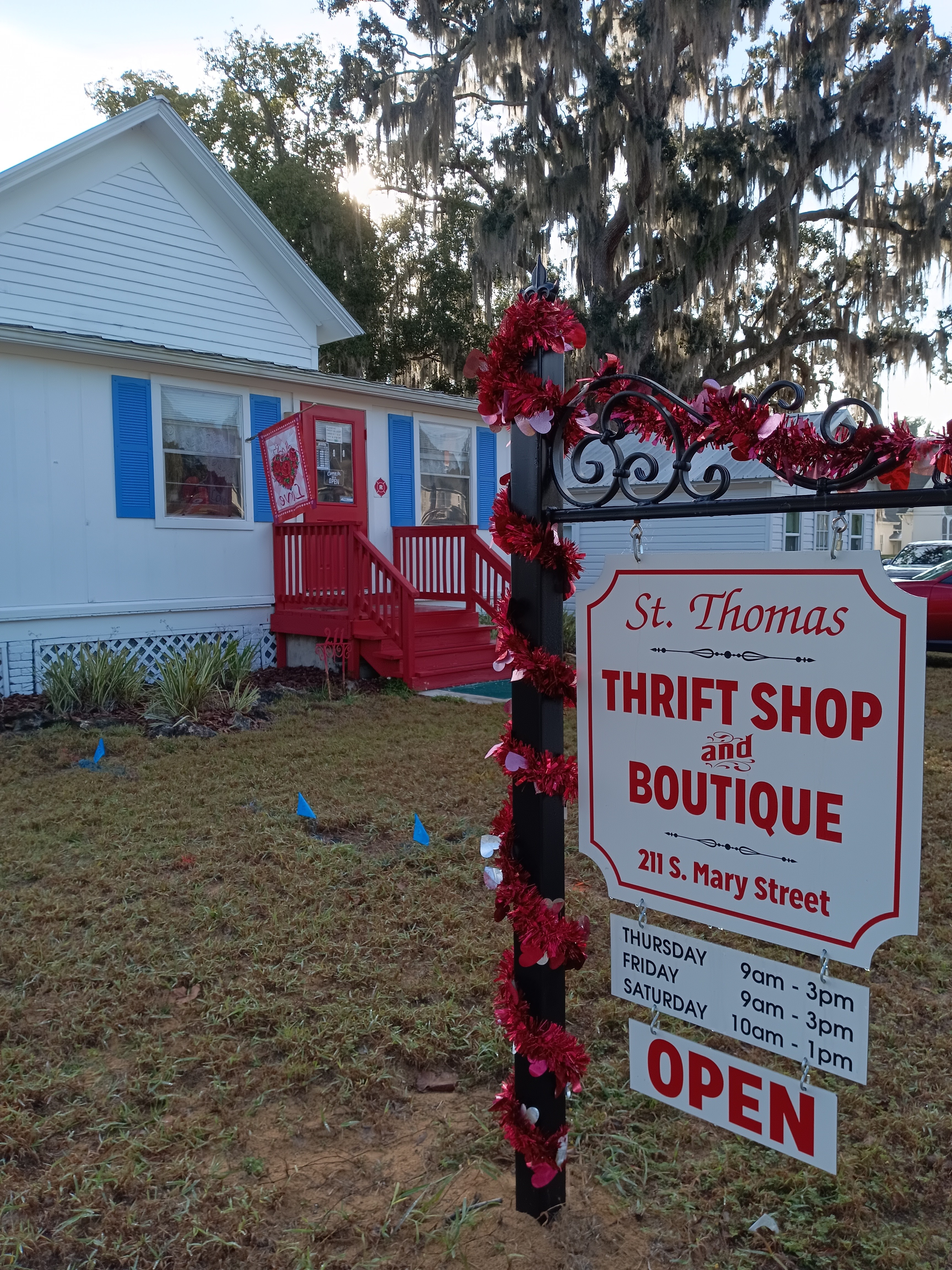 The shop is located in the Church parking lot at 211 S. Mary St. in Eustis. The shop is open on Thursdays and Fridays from 9:00 am to 3:00 pm and on Saturdays from 10:00 am to 1:00 pm. with two Volunteers working each shift to sell merchandise. Another ten to twelve volunteers sort and stock merchandise on Monday and Wednesday mornings. The shop pays its own operating expenses and funding for needy causes is dispersed twice per year via grant applications available on the Church website www.stthomaseustis.org.