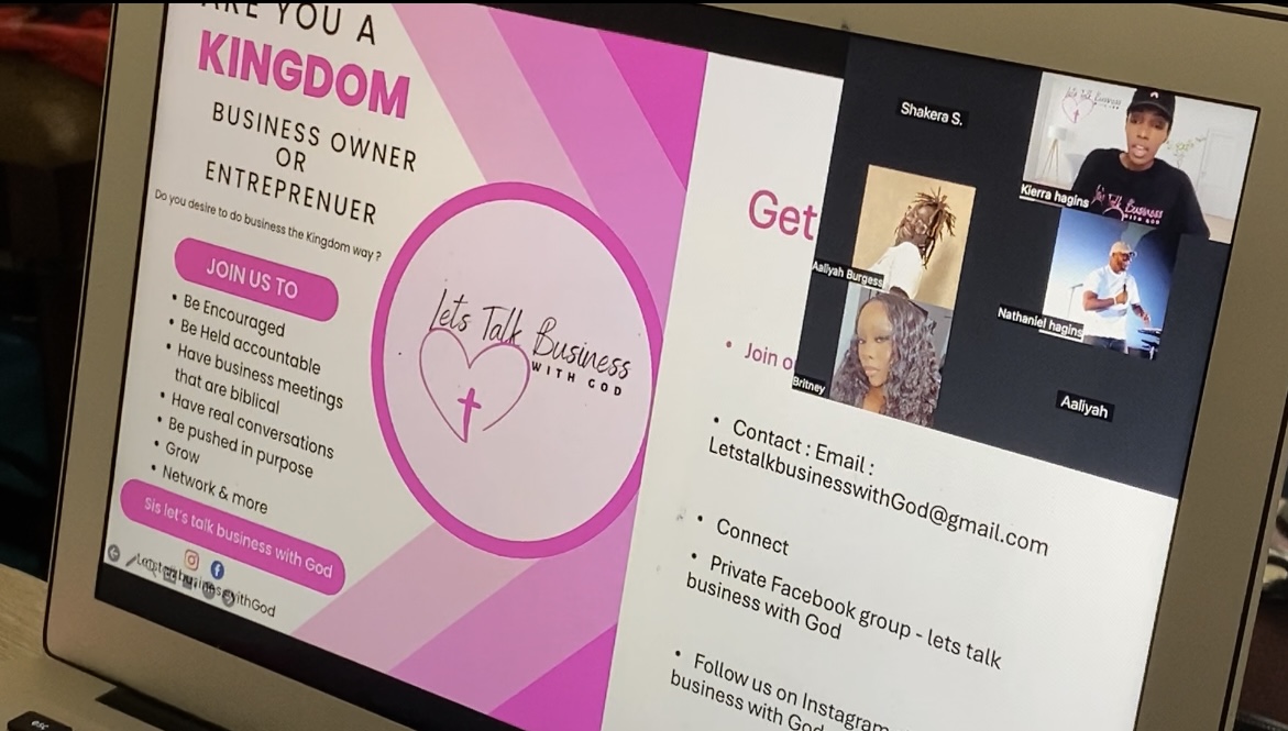Let’s talk business with God is a community for women who desire to do business with God the kingdom way for entrepreneurs and business owners . We stand on biblical principles and are pushed to honor God in every part of our business and to push for purpose we have corporate zoom meetings where we have real conversations about things we deal with as business owners and entrepreneurs but we see how God would want us to respond. But in addition to that we also have webinars and resources available to help us better understand the business side of business. What sets us apart from others is that it was a business built on Christ in faith while also being a mom or 3 and a wife .we have women from all over the world join us from different businesses and different places in business. We are led by the holyspirit in all that we do and are truly bible based . we have times of prayer , challenges and opportunities to network with other businesses and things to keep us connected throughout the week . We are firm on our core values to ensure that we are doing business from a place of God’s love and to ensure that no one is perfect and we all have something inside of us and we need others and to always be reminded of the heart of Jesus and to not just speak about it but live it out in business . What I’m most proud of is that even though currently I may not have thousands of dollars to do things I’m proud to say that God has provided everything that is needed thus far to build the brand he desires to be spread throughout the nation . I want readers to know that any business without God won’t work but luke 1:37 nothing is impossible WITH God and my prayer is that you would find a community that will help push you into what God has purposed you to do in business. If you would like to connect with us we offer a Range of opportunities that we believe are fitting for any place you may be in business being you are starting , it’s just a thought or you have started . We offer mentoring, covering you in prayer , classes , resources , love and most importantly the word of God we don’t pressure you to anything but we always push and encourage but whatever decision you choose we still care for you .