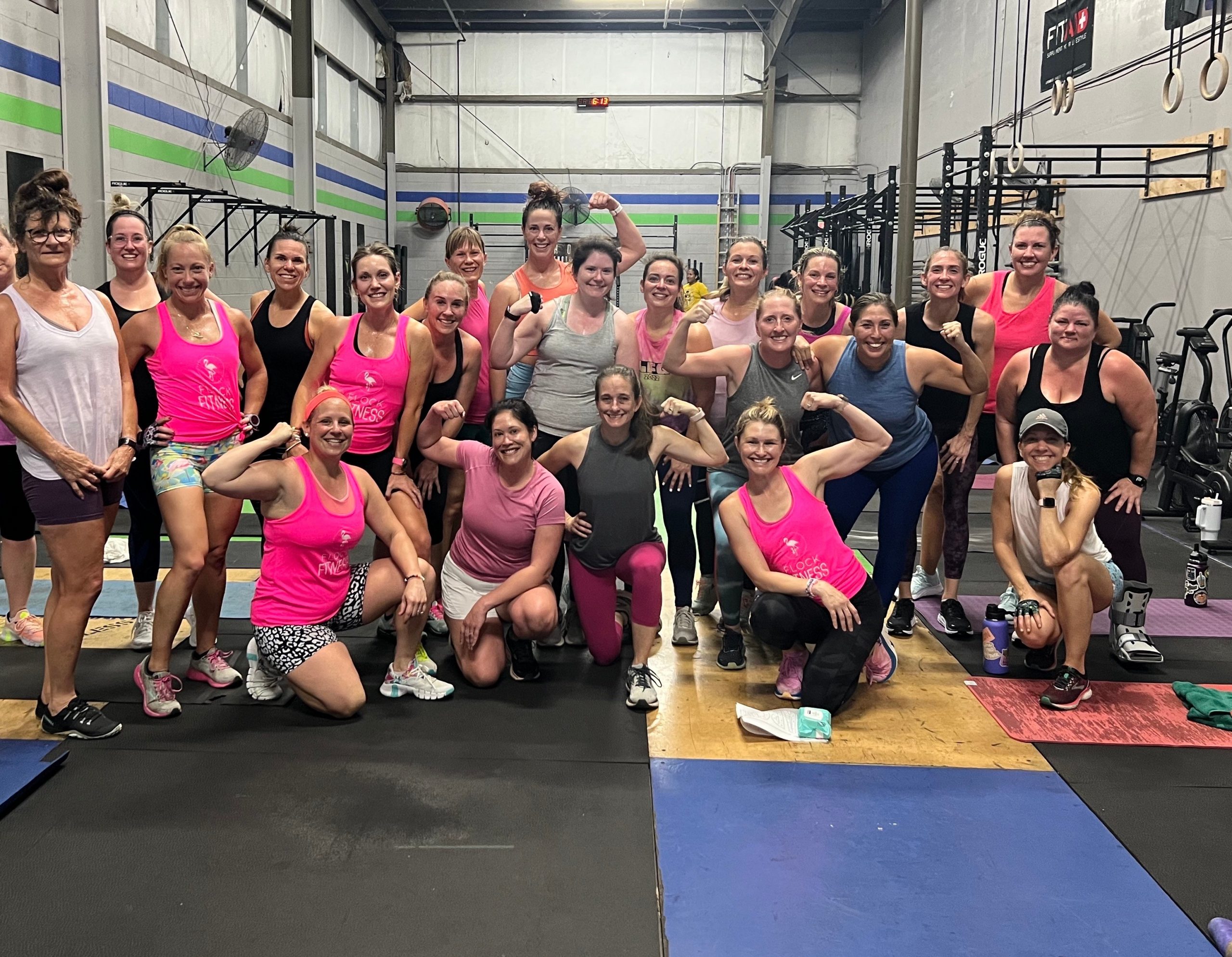 I have been involved with this community for over 9 years. I started as a new mom and client when my daughter was 8 months old (she’s 10 now), and became an instructor shortly after. Fast forward to now – owner of Flock Fitness for 2 years this coming February! I cannot rave enough about how much this group of women inspired me as a new mother – not only in the health and fitness realm but as a support system. That’s what keeps me and my team going every day – knowing that women can lean on the community we have in Flock Fitness. Our amazing group of certified trainers is so dedicated to providing not only a great workout for clients, but again that support and connection. I’m proud to say Flock Fitness is a place where there is always someone cheering for women and celebrating every win!