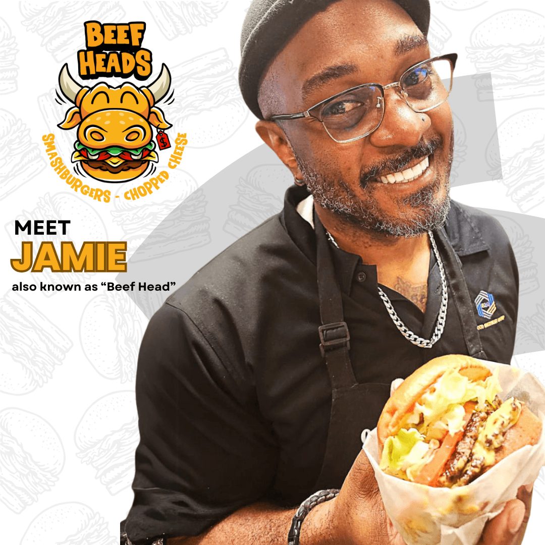 I spent over two decades in engineering supporting roles and corporate business, but my true passion has always been food and community. After founding 2Good Virtual Concepts and launching multiple restaurant brands inside EMES Food Hall, I wanted to create something deeply personal — a brand that represented both hustle and heart. That’s how Beef Heads was born: a smash-burger and chopped-cheese concept inspired by real people in my life, with menu items named after family members who motivate me every day — like The Big Rich, named after my brother, a U.S. Army Lieutenant Colonel.