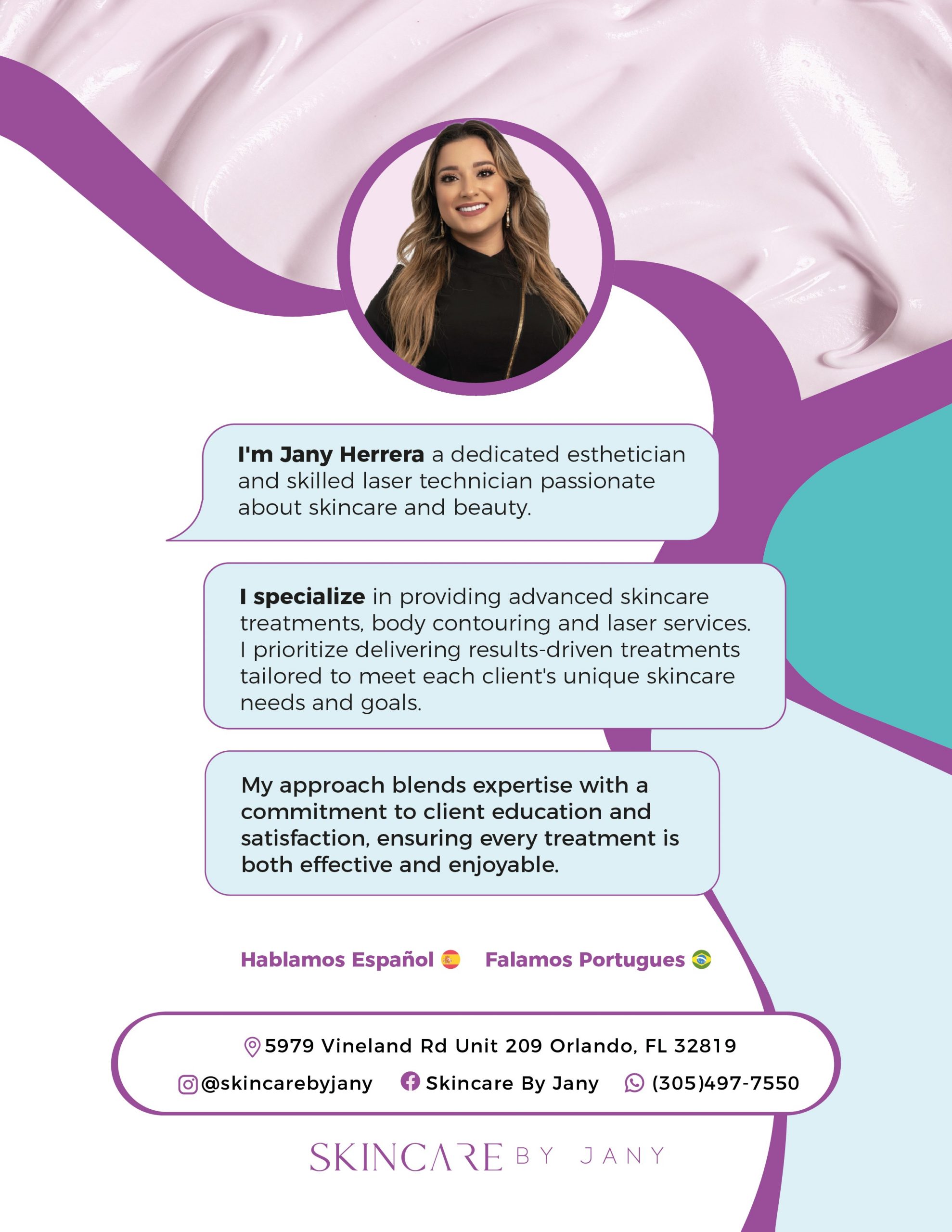 My name is Janily Herrera, and I am a proud Latina entrepreneur originally from Venezuela, where I earned a degree in accounting. Growing up in a hard-working and entrepreneurial family, I was instilled with the values of determination, perseverance and the drive to succeed. While my academic background provided a solid foundation, I discovered my true passion in self-care and helping others feel confident in their skin.