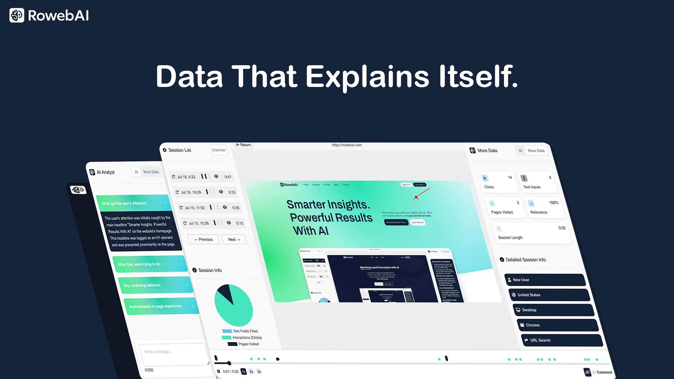 RowebAI is my SaaS company. It focuses on website analytics. We show how users behave through visual data like session replays, heatmaps, and AI driven insights. The goal is simple. You see friction fast. You fix issues faster. You increase conversions without guessing. Our platform is built for companies managing multiple brands or sites, not single hobby projects.