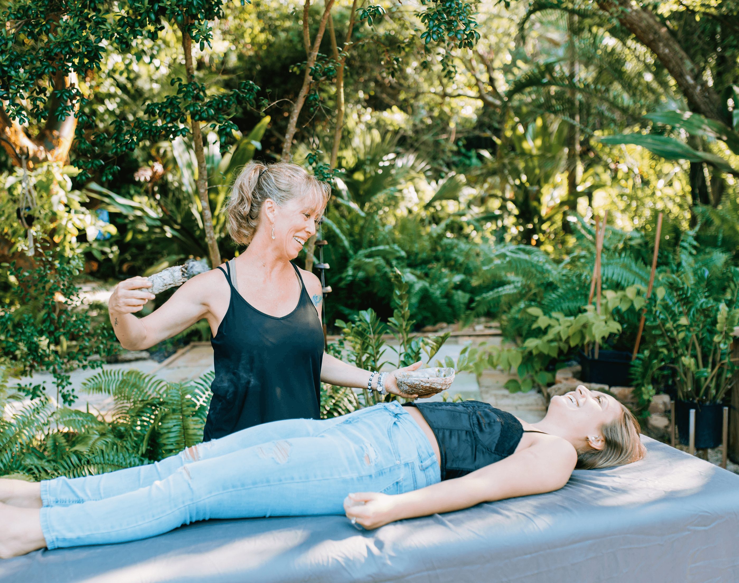 The places that bring me joy – our jungly backyard garden, the beach, or just about any place in nature… and on my yoga mat!