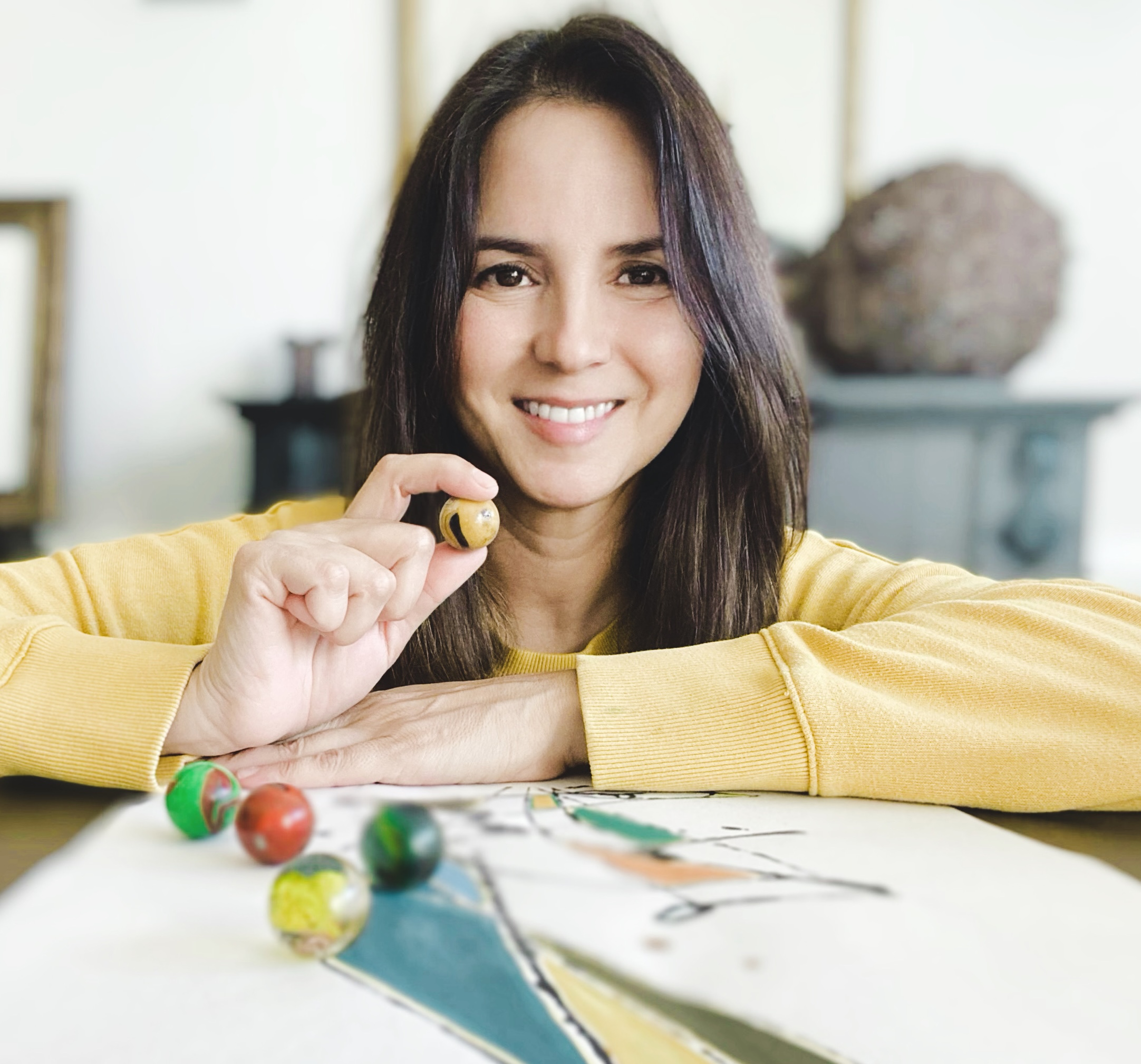 I invite viewers to immerse themselves in the positive energy that it is created when I throw marbles coated with paint onto my canvas or paper. This interactive experience fosters a connection between us, allowing them to witness the spontaneity and authenticity inherent in my creations. I want them to appreciate the raw, unfiltered nature of my art.