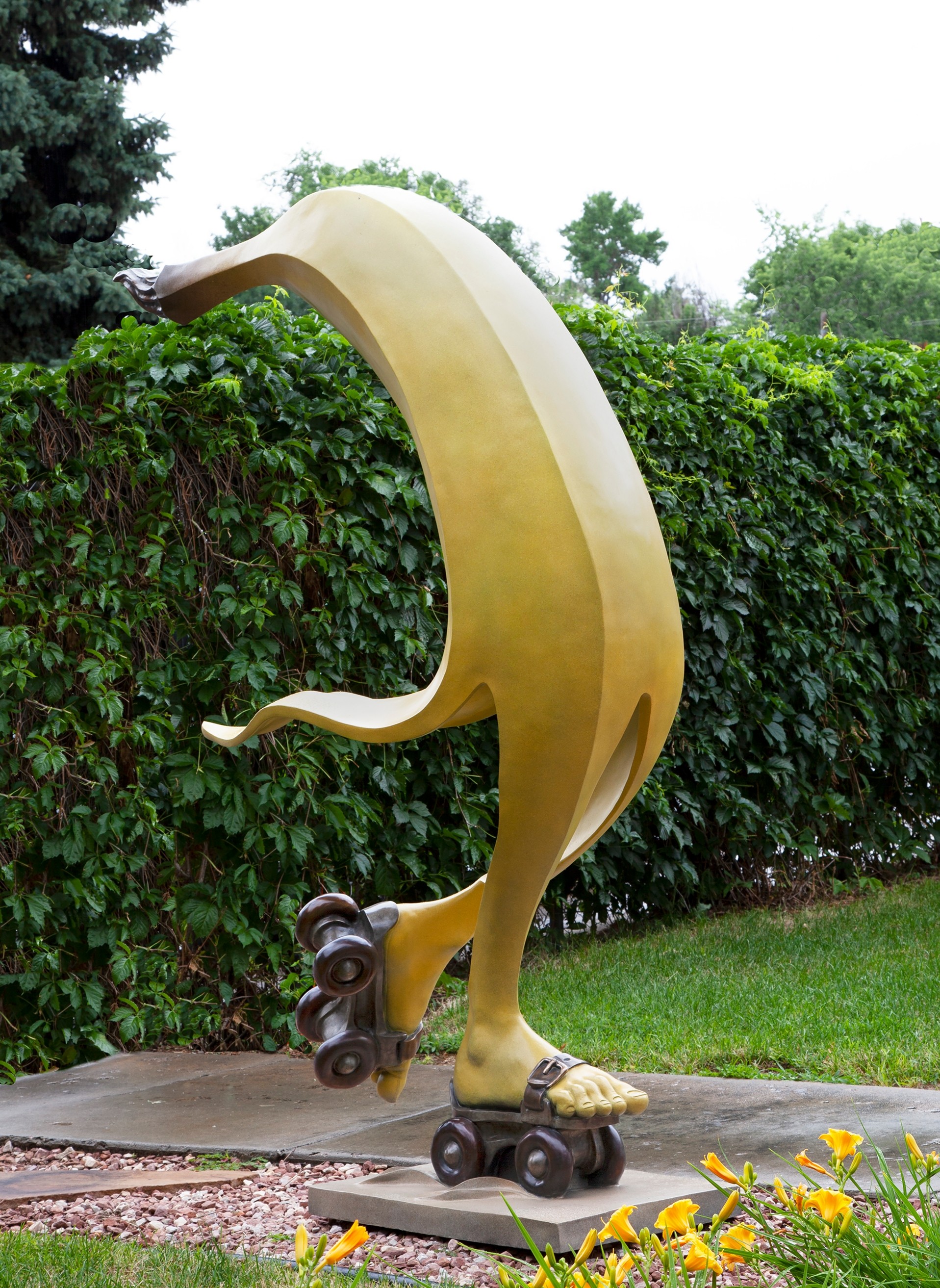 My signature piece has become “ON A ROLL” a 7 foot tall banana on rollerskates. It becomes a focal point where ever it placed, the most recent one being on the campus of the University of Tampa.