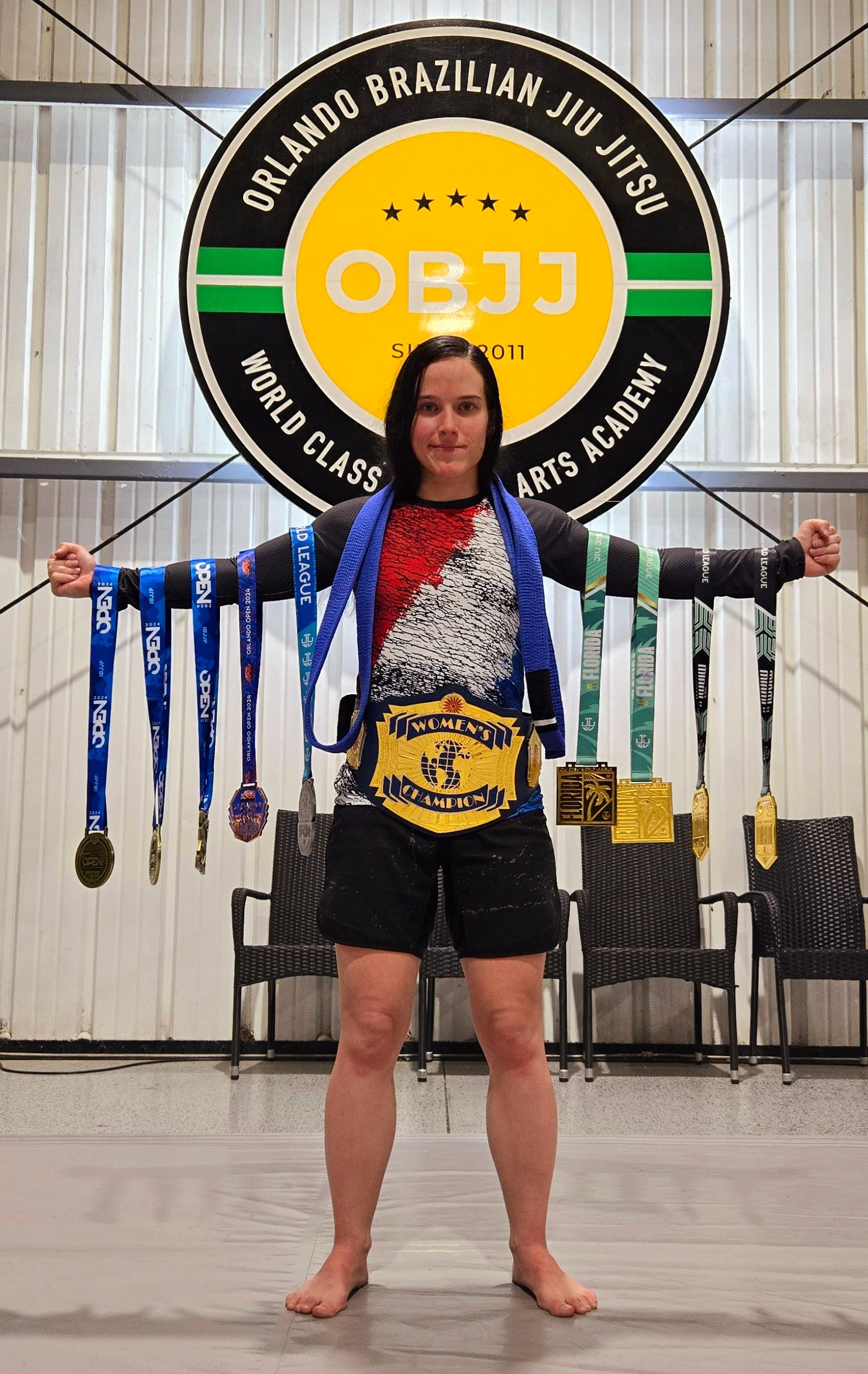 I’ve always had a passion for sports/fitness since I was a kid. I started out with joining amateur wrestling when I was 12 years old. I did that for about 3 years and enjoyed every moment of it. Then I decided to join the girls weightlifting team my sophomore year. Ended up getting pregnant my junior/senior year (I graduated a year early), so I took some time off to take care of my baby and myself. I eventually started training for Profesional Wrestling around November of 2017. At the same time, I started competing for powerlifting up until my last competition in October of 2018. By February of 2019, I made my debut in Profesional Wrestling. I traveled all over Florida and out of state (Georgia, Alabama, Tennessee, Texas, Indiana, and New Jersey). I also have won some championships (Knockout Women’s Champion, POW Women’s Champion, IWA Florida Women’s Champion, AIWF Southern Women’s Champion, Freedom Force Women’s Champion, and currently the Old School Wrestling Women’s Champion). While Wrestling, I started training and competing in Brazilian Jiu Jitsu (October 2023-present), I attended and completed my personal training certificate through National Personal Training Institute (March 2024-July 2024), completed and received my D license for unarmed security (March 2024), and I recently started teaching BJJ Kids classes at Orlando Brazilian Jiu Jitsu. It takes a lot of dedication, discipline, and time management to be able to work, train, compete, go to school, and take care of my child. It’s not an easy path but it’s a path I gladly chose to take.