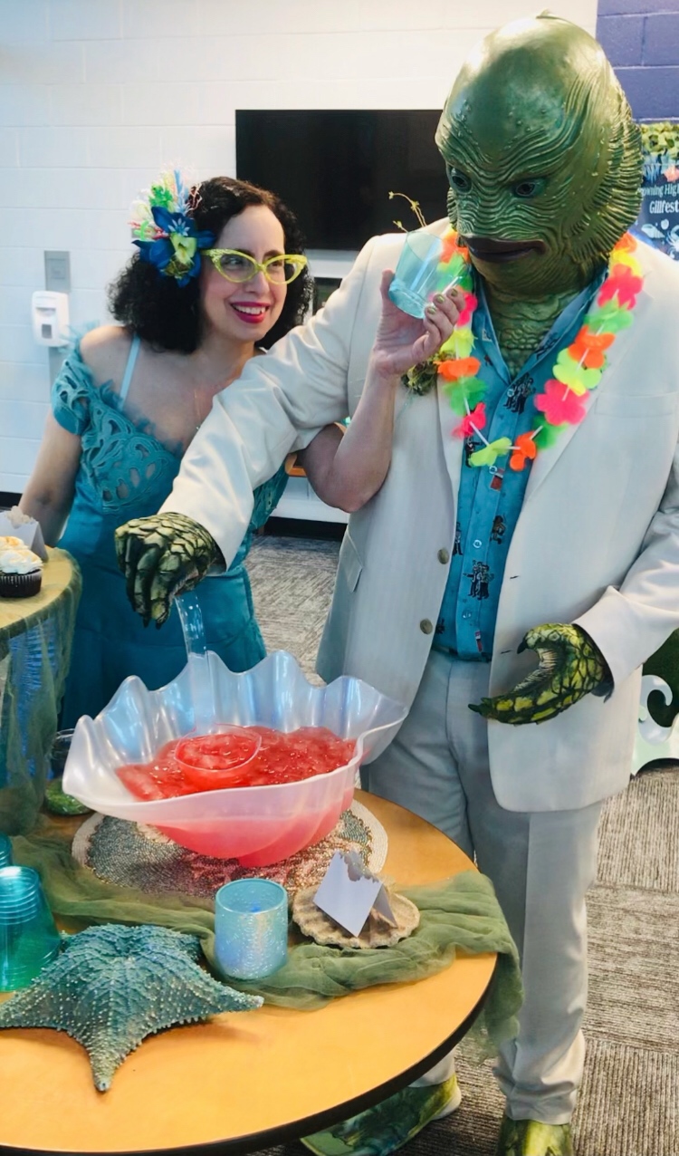 The Prom was a huge success, everyone understood the assignment and passed with flying colors! From the guests, to the The Kreepy Tikis, the vendors, the caterer, bartender, photographer, the photo op creator, and the venue’s host. Our Gillman aka leisurecreature, once again did an amazing job!
