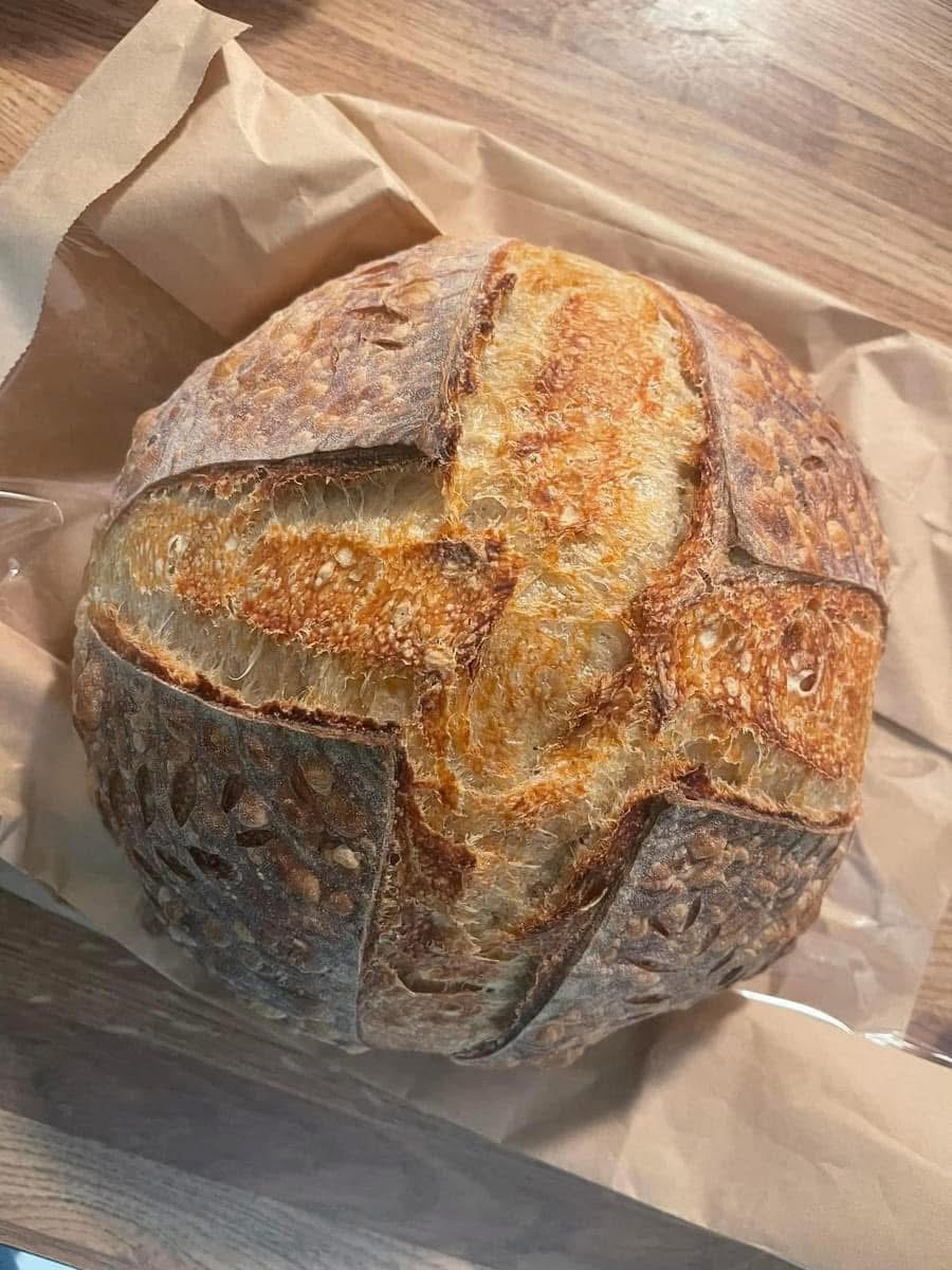 I bake sourdough and sourdough treats. I am known for my breads but people love the muffins, cinnamon rolls , browned butter chocolate chip cookies and coffee cakes. I am most proud of the classes I have started because now if someone is able to host a class in their home or work place I am able to share the knowledge and hands on experiences with others. Building relationships with my customers and class students is my favorite part of the journey. Seeing them love my baked goods or learning to bake it themselves is worth all those 4 am early mornings.