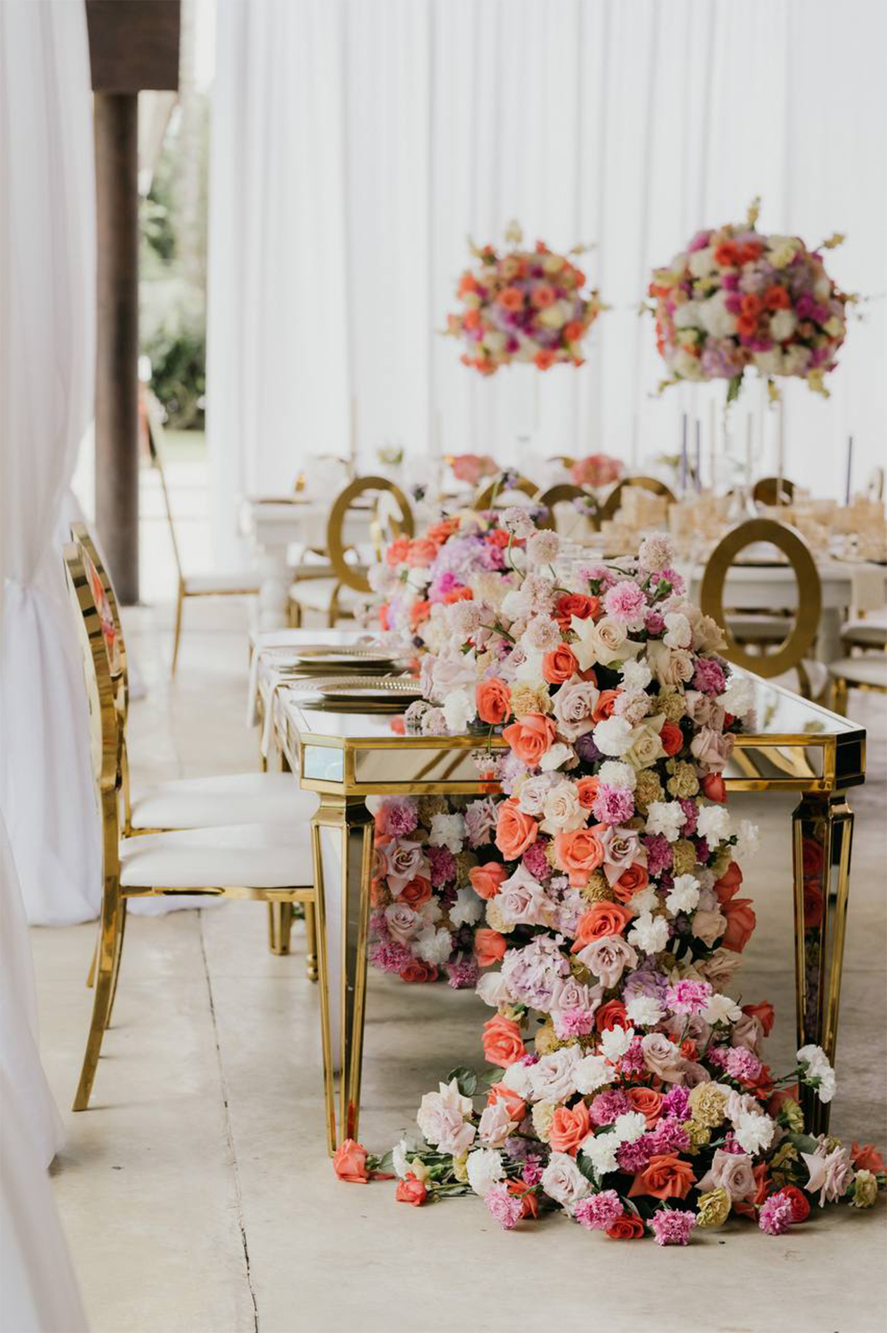 I view floral design and styling as a way of translating sensations into floral compositions and environments. Every creative process begins with careful observation and analysis: the essence of the couple or the protagonists of each celebration, the venue, the light, the proportions, and the way people will move through and experience the space. From there, I develop concepts that naturally dialogue with the architecture, the celebration, and its surroundings, resulting in designs that feel harmonious, coherent, and deeply intentional.