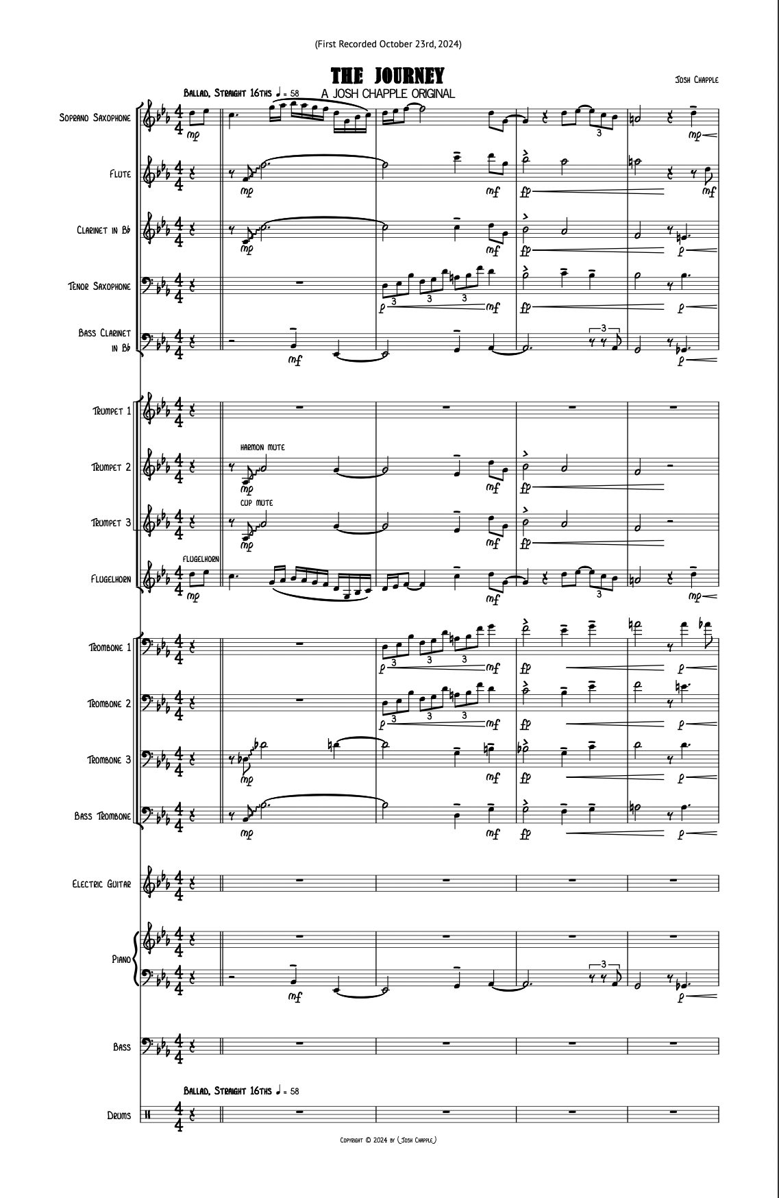 As someone who writes almost exclusively in the large jazz ensemble genre, what sets me apart from the pack the most is how much of my music is inspired by metal. The integration of metal into large jazz ensemble is a very new trend, and isn’t done by most new composers. There are a few jazz composers who use it a lot (Kyle Athayde, Miho Hazama, Jon Hatamiya), who all coincidentally happen to be some of my favorite composers. However, I want to take it a step further. Most of these have a section that is metal, and then the rest of the tune is some other feel. While most tunes I wrote before this interview were like this, in the future I plan on writing a tune that’s exclusively metal the entire way through.