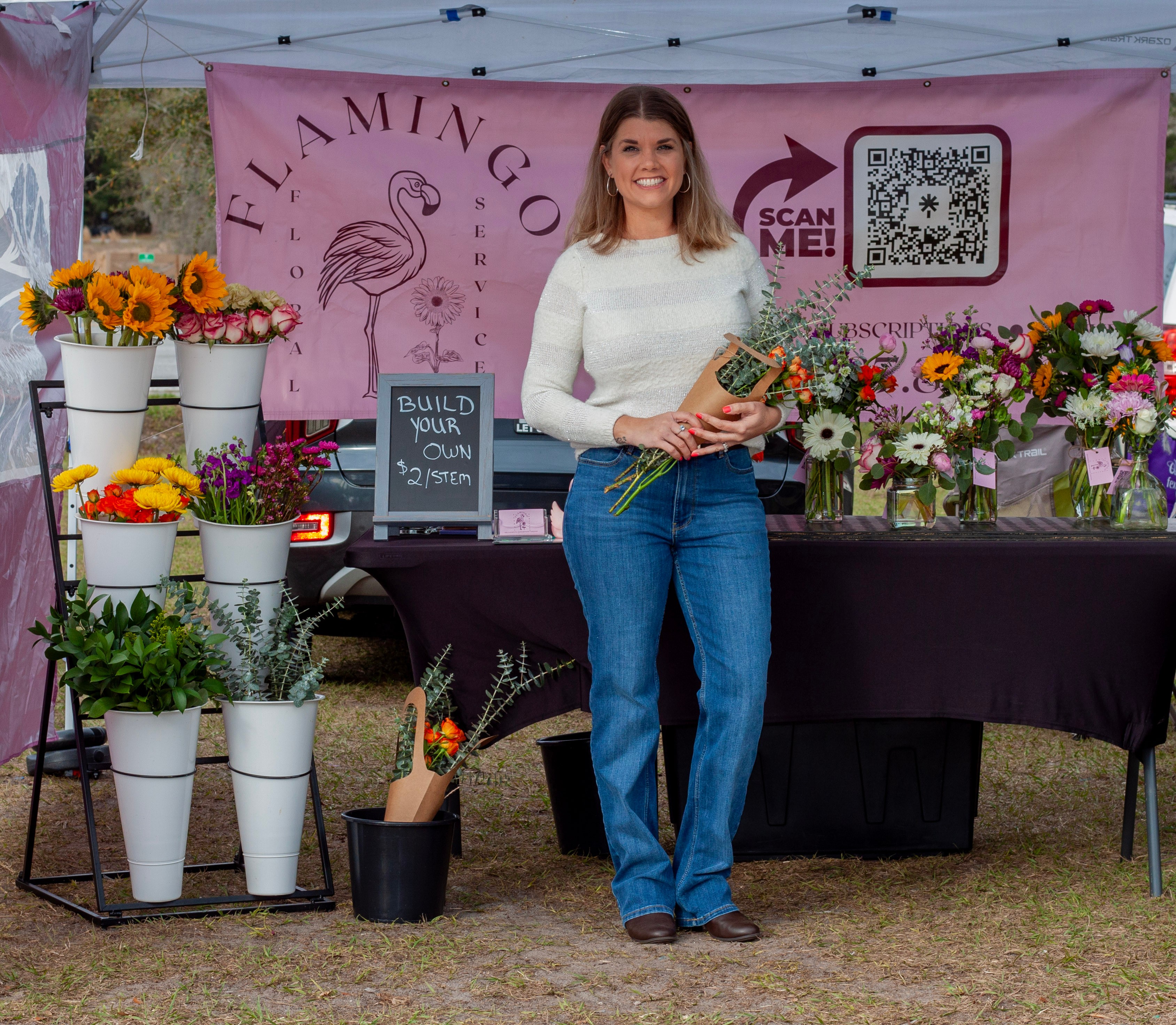 I’ve had to overcome all sorts of obstacles both physically and mentally. Physically, for example being a farmer’s market vendor battling Mother Nature. All of the seasons have had their ups and downs including my least favorite-windy season when my tent was launched in the air and my vases were shattered. But I overcame the hurdle, got a new tent, and my husband created a vase holding system to keep my vases from blowing over. Mental obstacles, overcoming post partum depression and having the courage to start this business in the first place! It has truly been a journey to getting my pink back just like the flamingo and the very reason behind the name. Pouring every single thing I have into this business all while trying to be a wife and mother has taken its fair toll and is not without lack of tears. (Usually in the shower) Every day I choose to keep going! I’ve wanted to quit, throw in the towel, completely give up but I keep going.