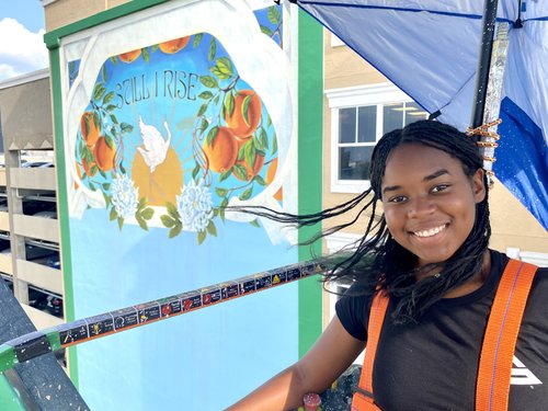 Delia Miller is an artist from Apopka, Florida. She creates murals across the Central Florida area and is heavily inspired by nature and cultural heritage. Delia believes that art should not only be aesthetically pleasing but should also tell a story. Whether she is working with a community group, a nonprofit organization, or a private client, she strives to capture the essence of their vision and translate it into a beautiful, meaningful work of art. Alongside painting, Delia finds joy in teaching with the nonprofit ArtReach Orlando every week and helping youth discover their strength and voice through the healing power of art.