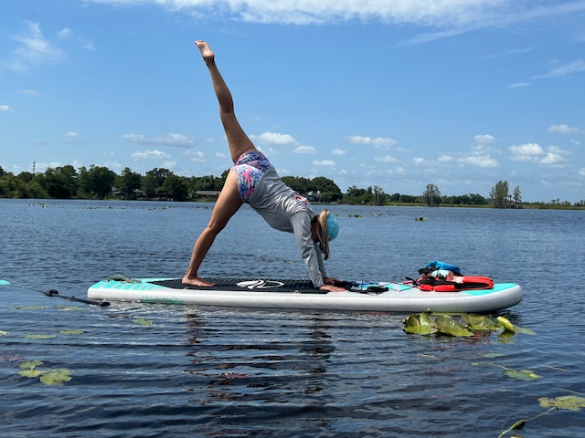 I took a SUP Yoga class in 2009 and I fell in love. Fast forward to 2022 I discovered that the SUP Yoga training being offered and I decided to get certified. I am a school teacher in Florida and my areas chain of lakes was the perfect backdrop to my SUP Yoga business. My first official class was the summer of 2023. Mossy Paddle Clermont was born. Season starts in June, once school is out and runs until the Fall.