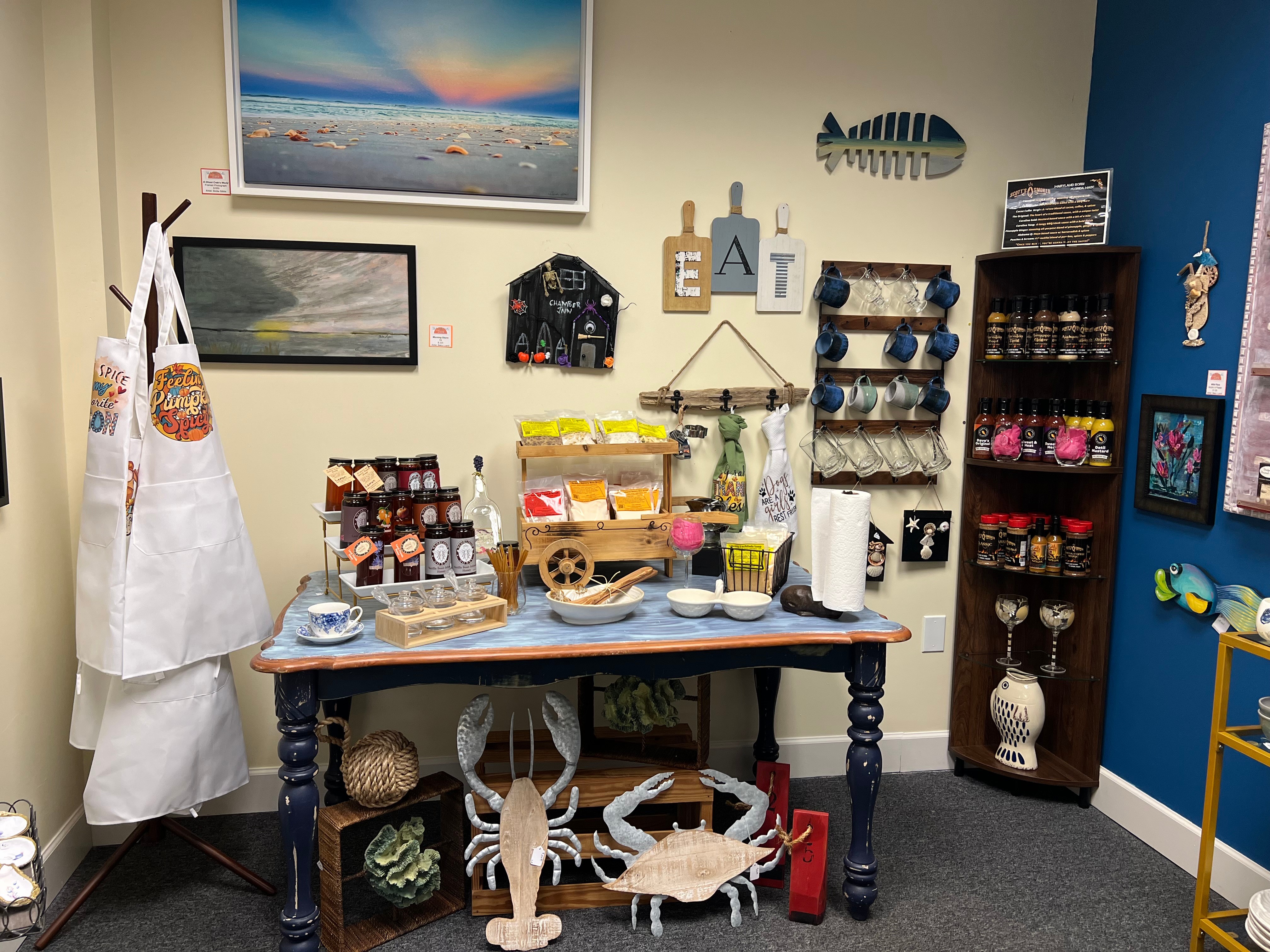 While I was born and raised in Kansas City, Missouri, I spent every summer in Daytona Beach, FL, visiting my godparents. Each summer while visiting, my mom and I had our favorite little ma and pop shops we would frequent. These shops would be filled with local artwork, with a coastal flair. I still today have a few of these items that we purchased some 40 years ago. My professional career was health care administration – focusing on dementia care, and providing training for staff and family members of those living with dementia around the country. After Covid, I personally needed to make a change for my own well being, and fell into a brief job helping a friend at a local shop – full of local artwork. The owner of that shop passed away suddenly, the shop closed, BUT a seed was planted and I decided then I wanted to recreate the experience I remember growing up… Sea Dreams by Sara was born.